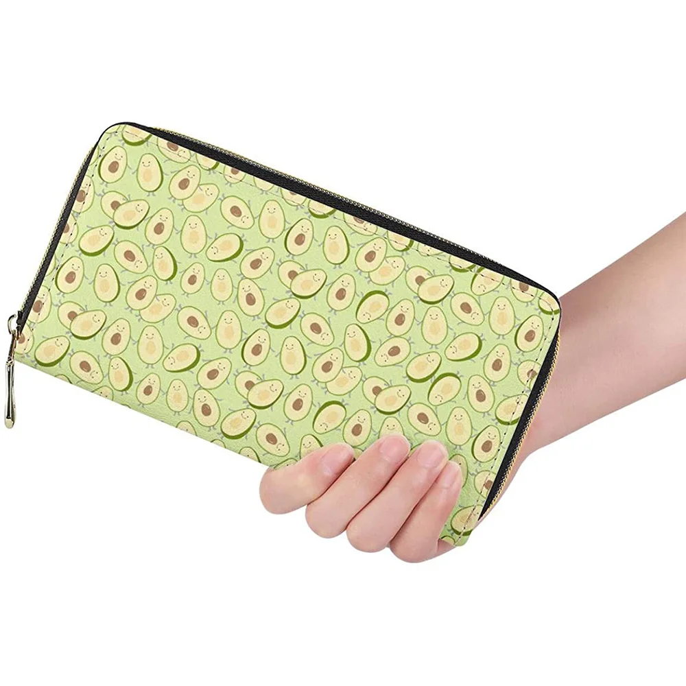 Длинные кошельки для женщин, прочный кошелек из искусственной кожи, Женский держатель для карт, клатч с кармашком для монет, кошелек для девушек с принтом авокадо