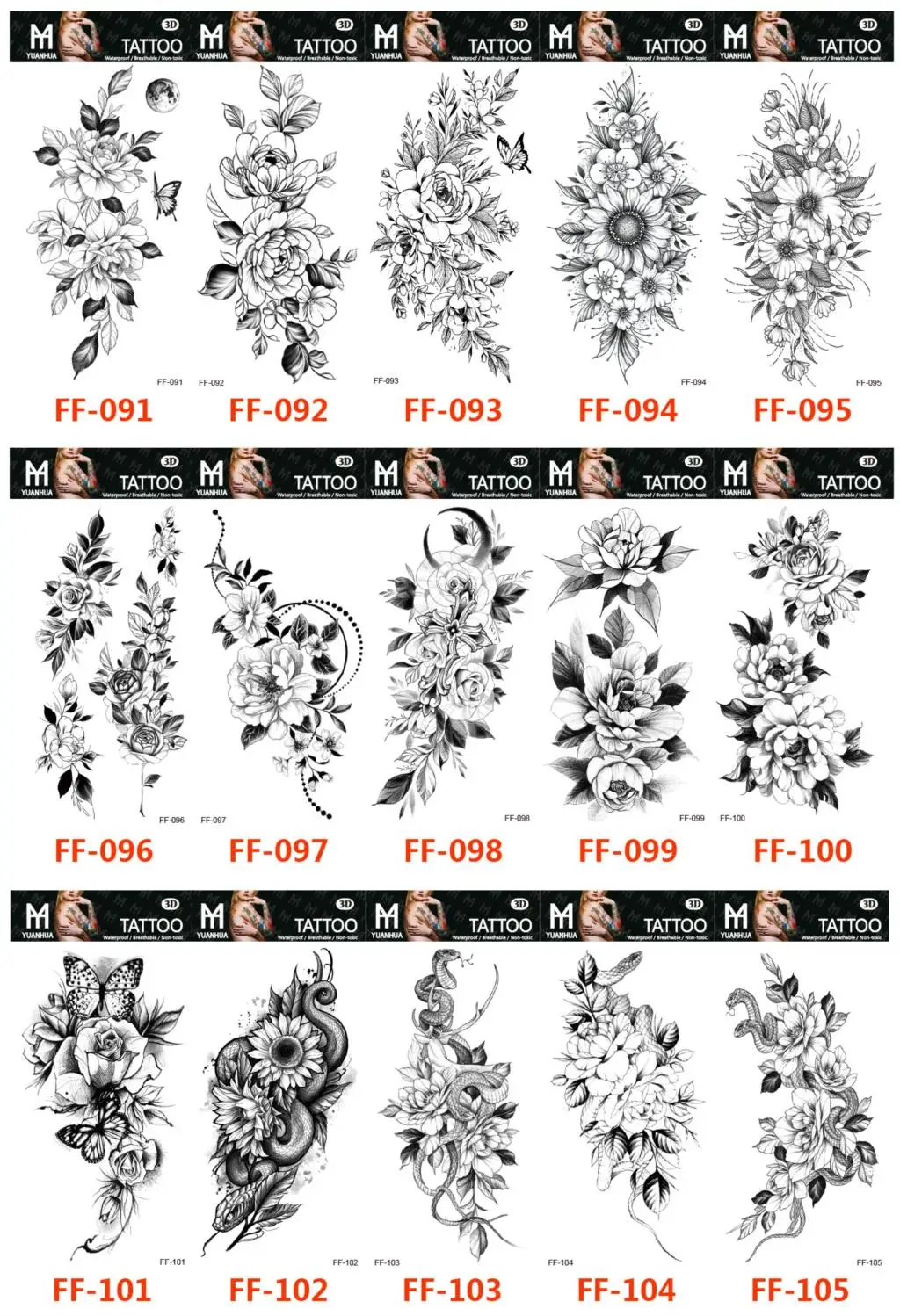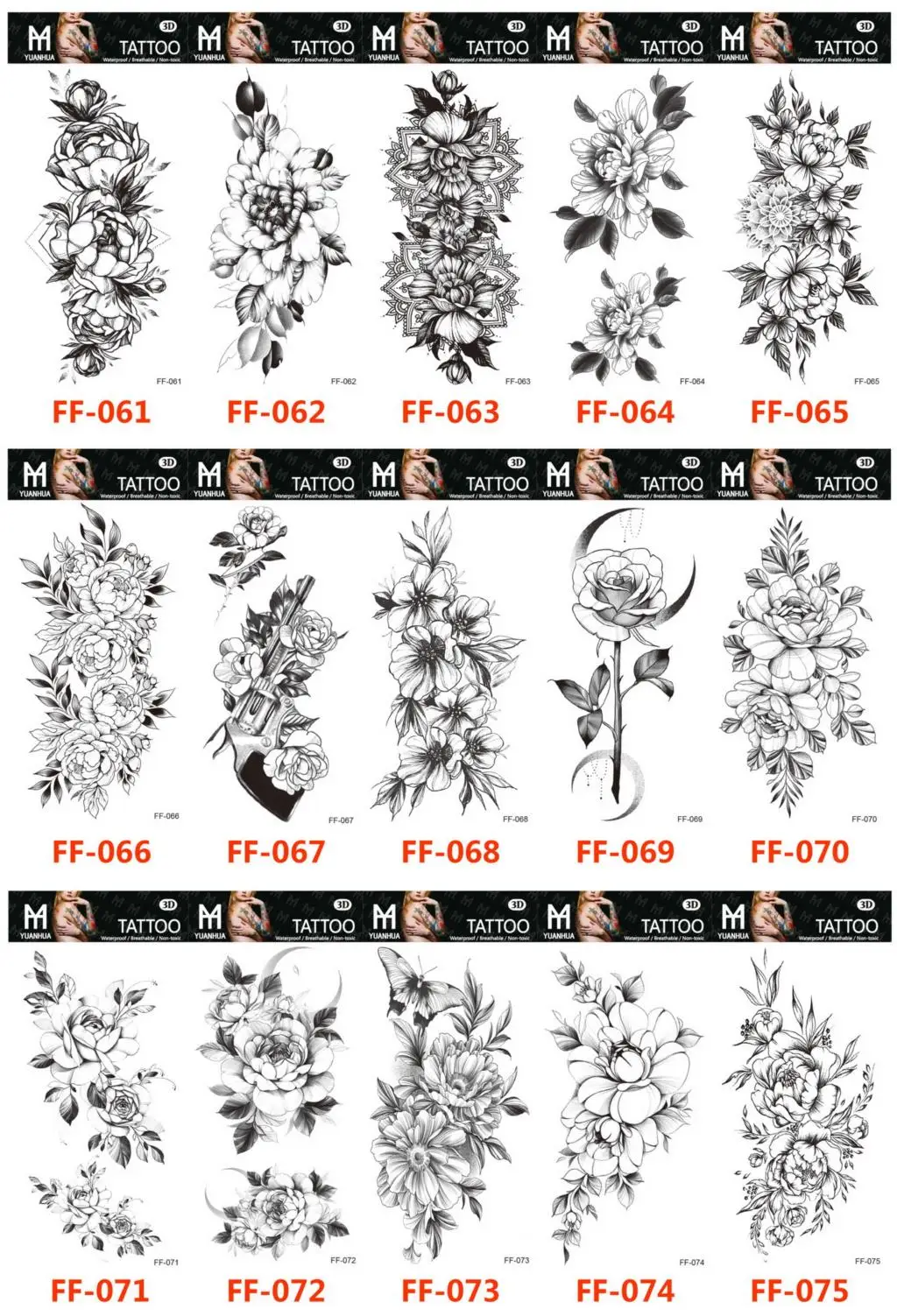 Модные черно-белые наклейки с цветами для татуировок женский боди-а...