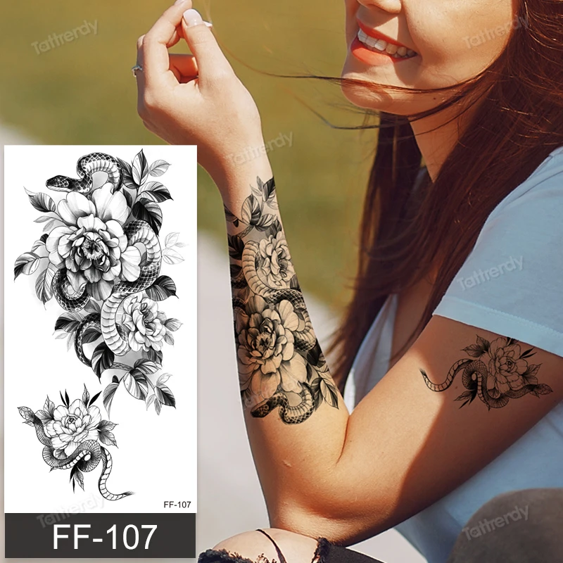 Тату цветок рукав Временные татуировки для женщин; Пикантные женски...