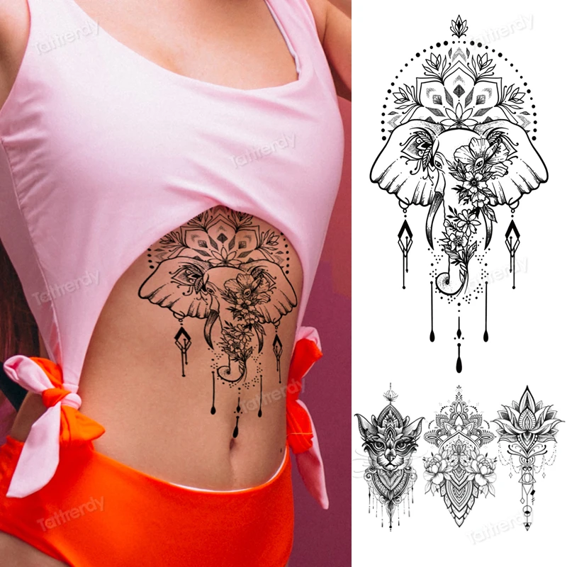 _ Временная тату-наклейка, Женская Сексуальная Татуировка на тело, мандала, Черная кружевная Арабская Татуировка под грудь, водонепроницаемая для девушек
