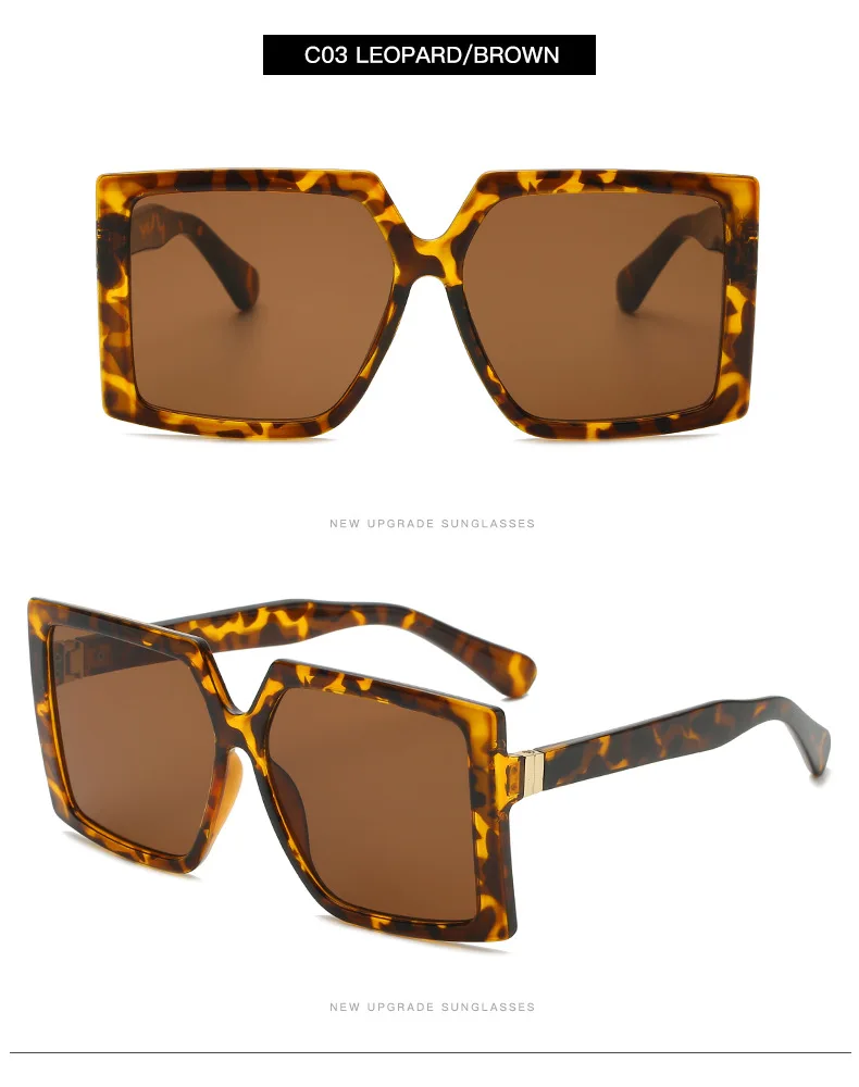 Солнцезащитные очки унисекс, цветные зеркальные темные очки в большой квадратной оправе, с леопардовым принтом, с градиентными линзами, UV400, черные, большие размеры