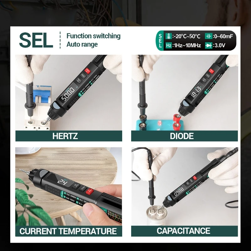 Цифровой профессиональный мультиметр A3008, 6000 отсчетов, тестер конденсаторов, миниатюрные электроинструменты, напряжение постоянного и переменного тока