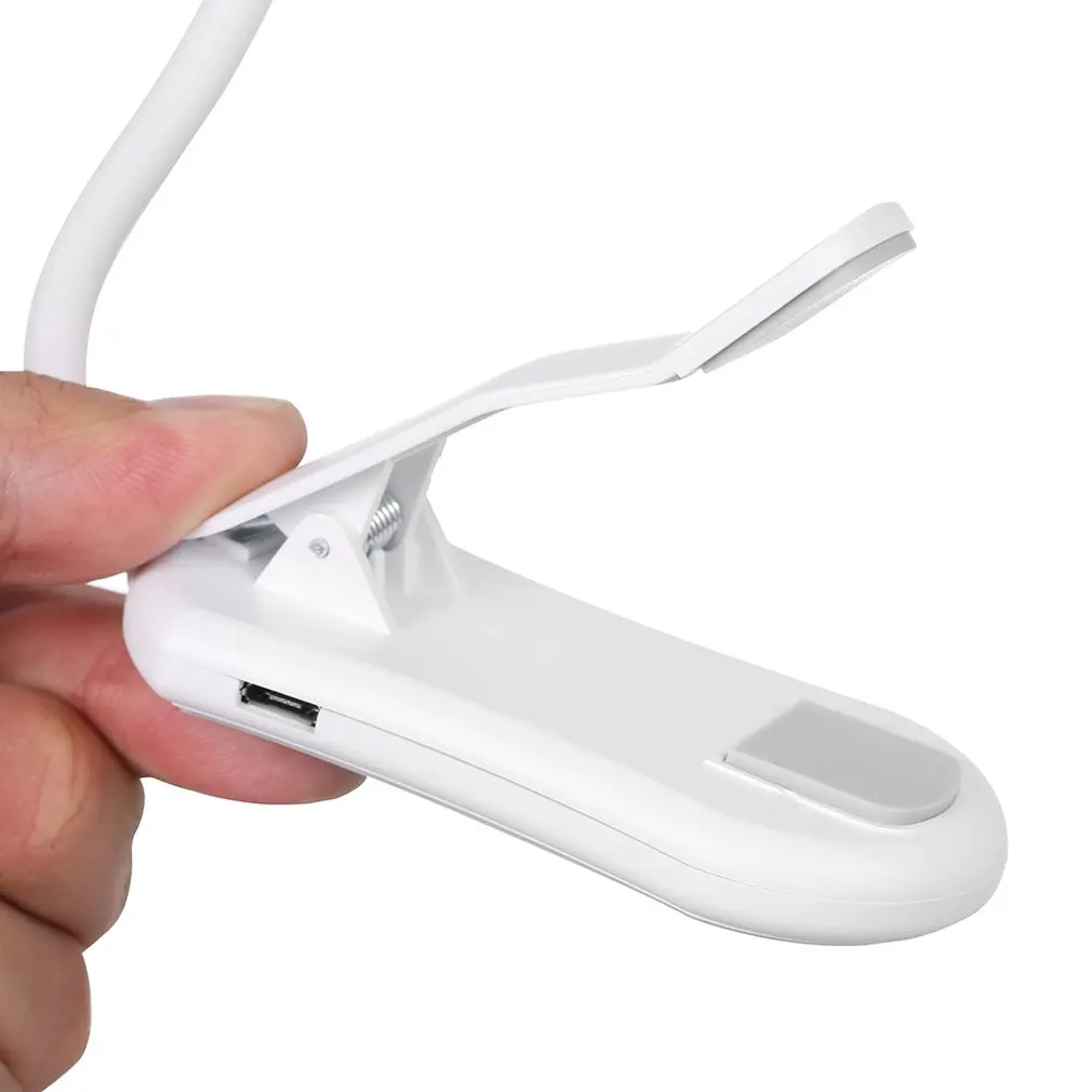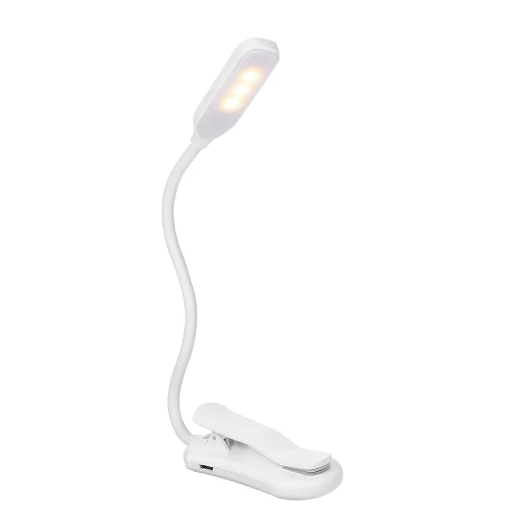 Лампа для чтения гибкая с зажимом, Перезаряжаемый USB светильник для чтения, 3 режима яркости, 1 Вт, 5 светодиодный, настольная лампа, прикроватный фонарь