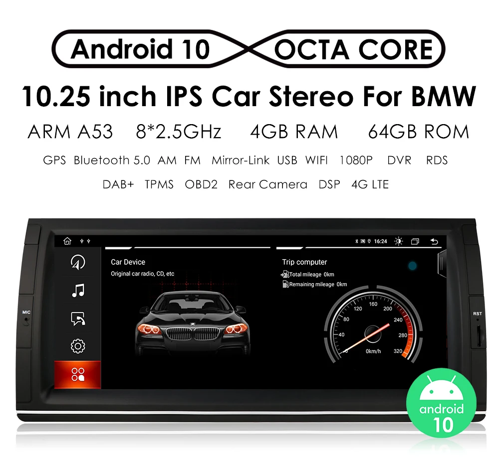 Автомагнитола для BMW 5, E39, X5, E53, M5, E38 1994-2007, 4G, LTE, ...