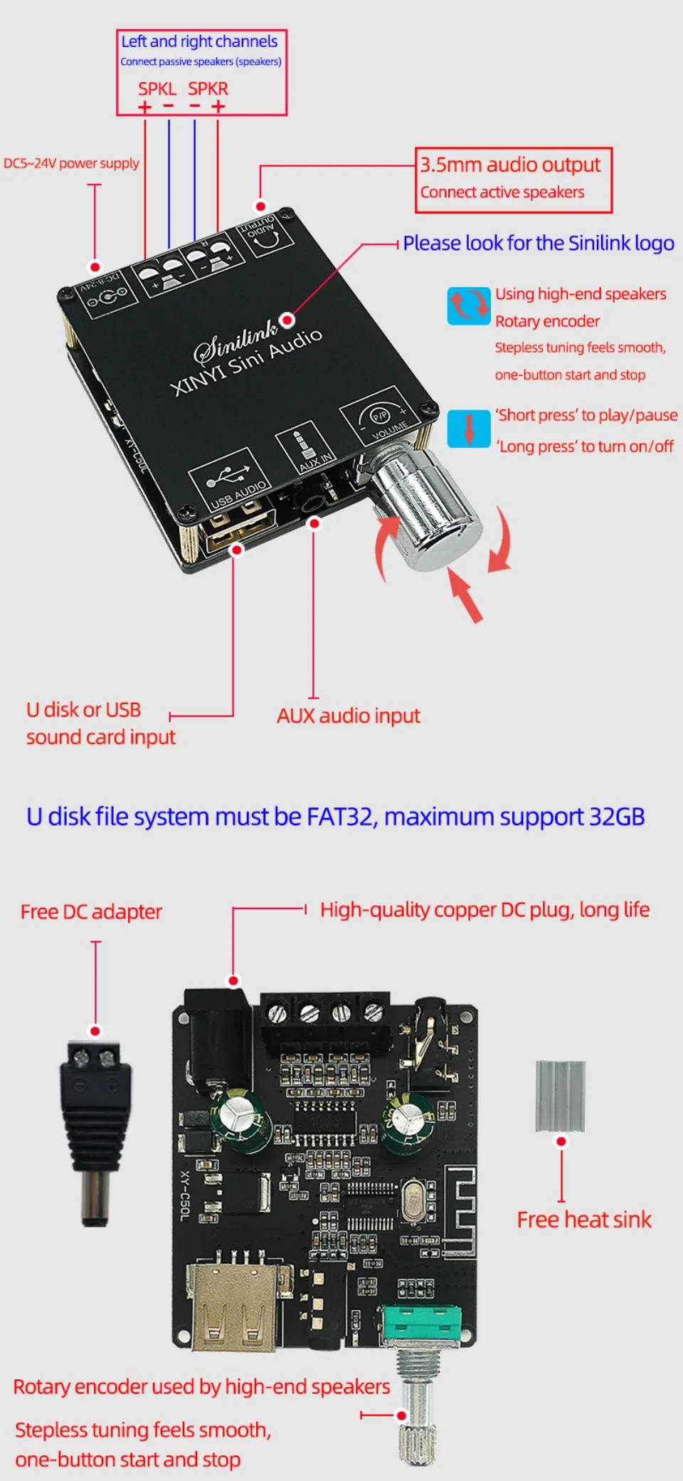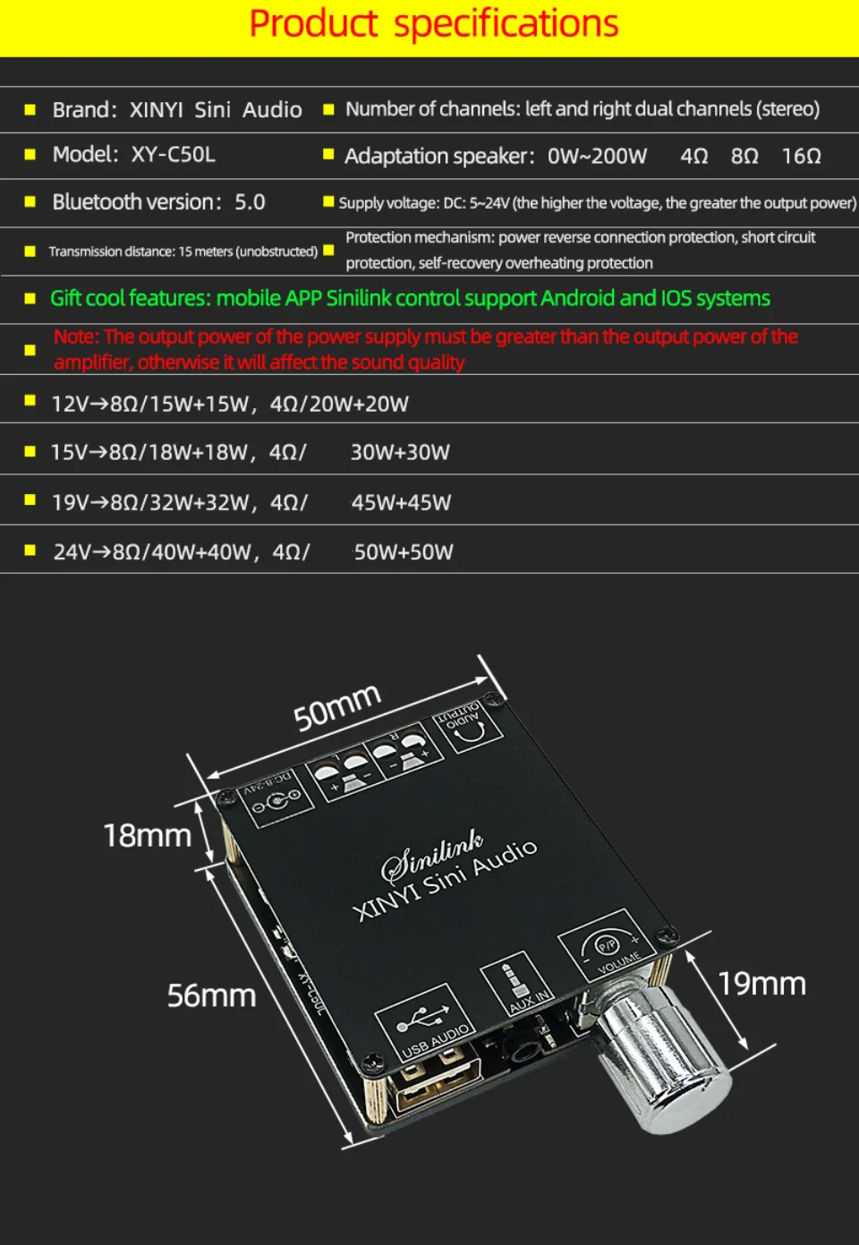 Усилитель мощности 2*50 Вт, Bluetooth 200, класс D, аудио, 10-Вт