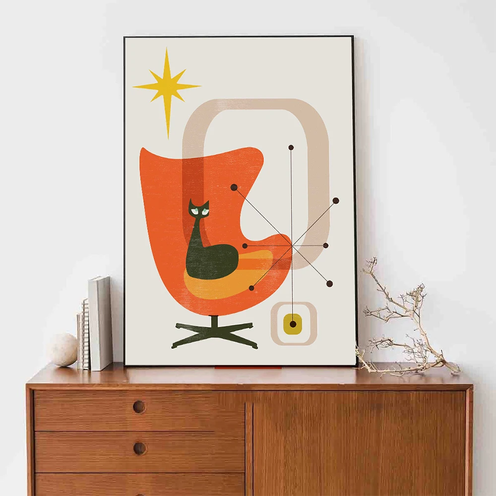 Постеры и принты в скандинавском стиле с черными кошками, настенная Картина на холсте в стиле ретро среднего века, спутник атомный для гостиной, Современный домашний декор