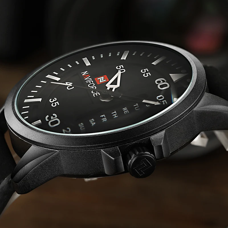 Особенности (прибл.):-Диаметр корпуса: 47 мм-Толщина корпуса: 13 мм-Ширина ремешка: 22 мм-Длина ремешка (чехол в комплекте) : 240 мм-Вес часов: 72 г-Материал ремешка: кожа-Регулируемый ремешок: Да-Питание от высококачественного импортного японского движения и аккумулятора-Функция автоматической даты и недели-Ежедневная Водонепроницаемость 3 АТМ (не подходит для душа и плавания) Посылка1x100 оригинальные часы NAVIFORCE