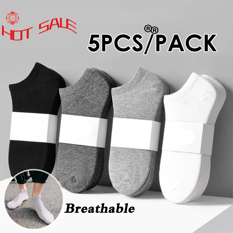 Носки мужские короткие, чистый хлопок, дышащие, невидимые, 5 шт.компл., весна-осень