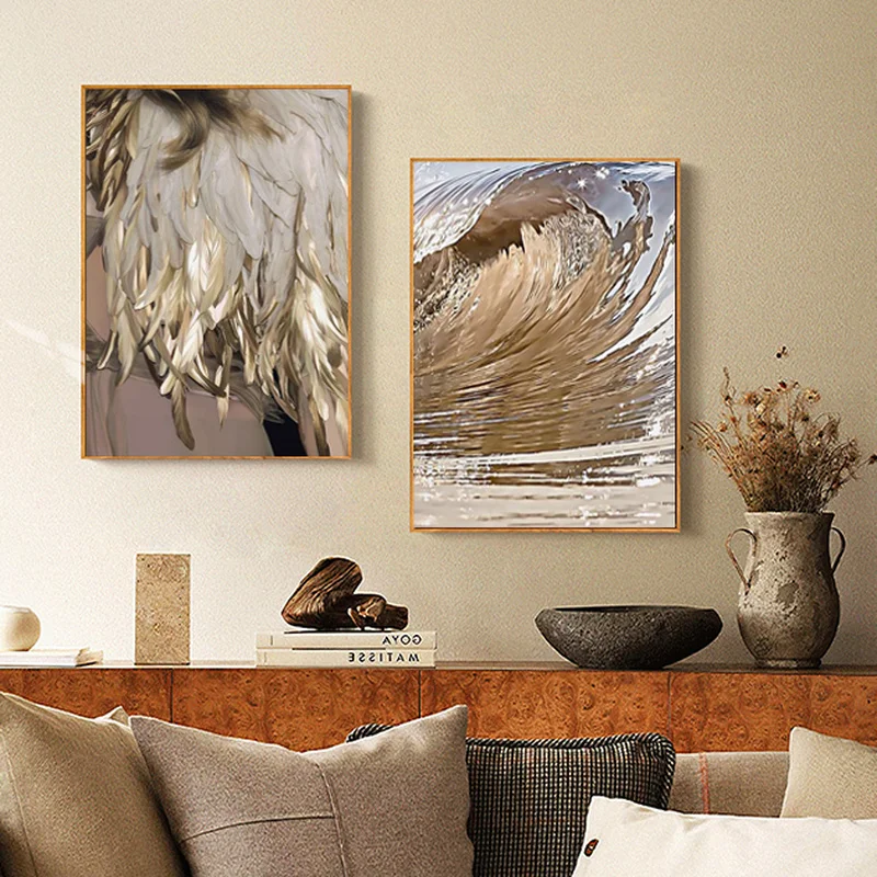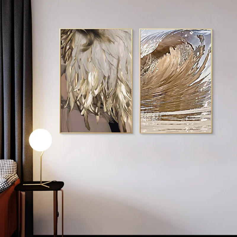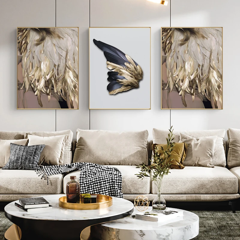 Абстрактный постер с золотыми перьями и печать крыльев на холсте изображения Роскошные Настенные картины для интерьера для дома Лофт Декор