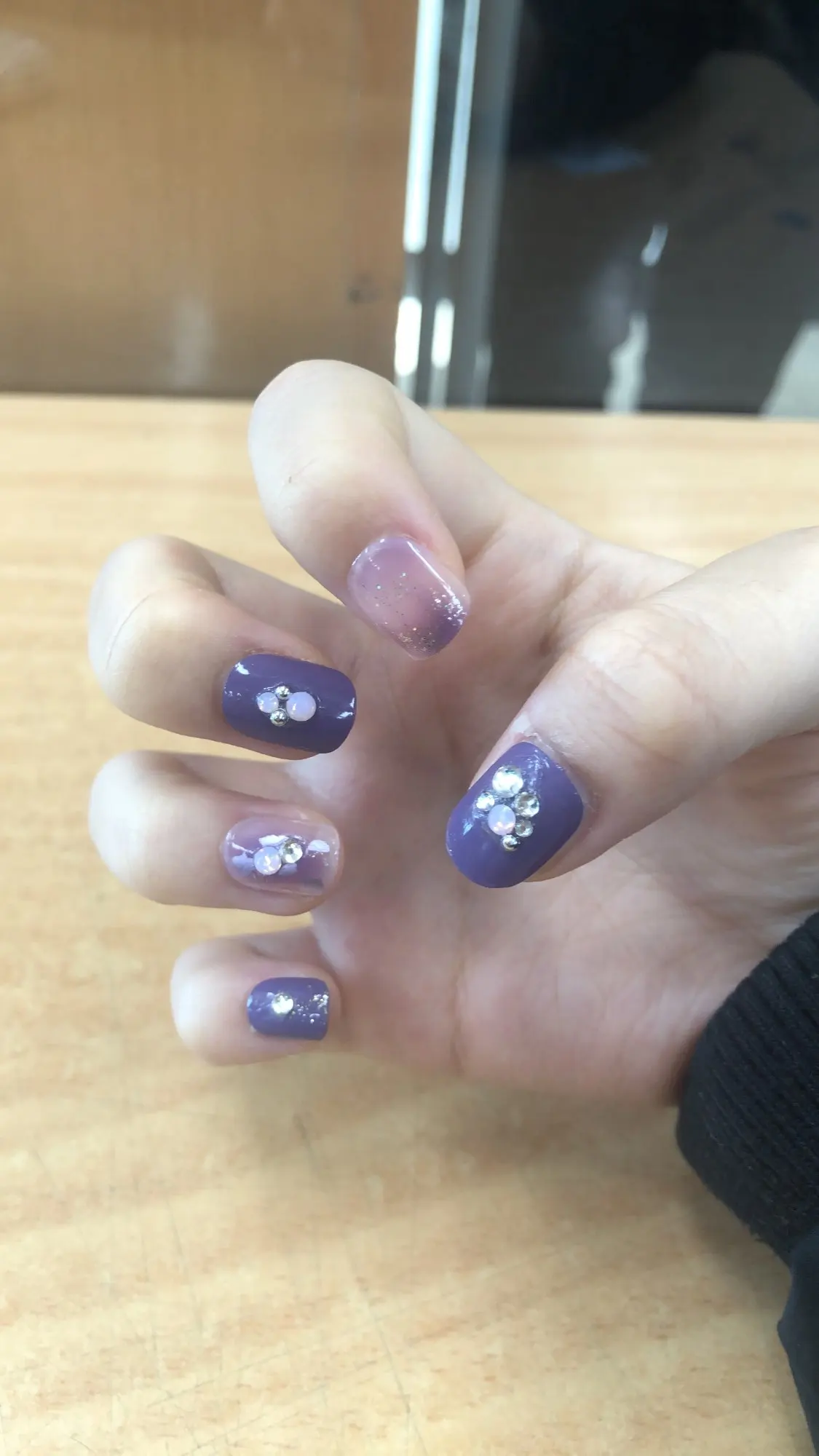 Накладные ногти, короткие, 24 шт., французские, фиолетовые, с блестками, накладные ногти с клеем, накладные ногти сделай сам, маникюрные инструменты для ногтей