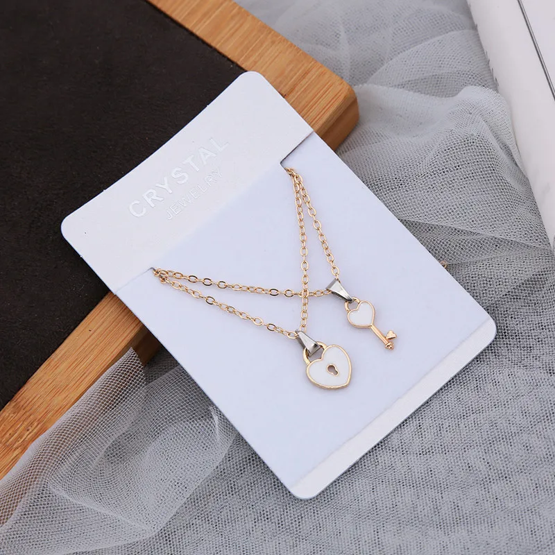 Модные парные подвески для женщин и мужчин, ожерелья 2 шт.компл., подвески в виде сердца с замком, цепочка из звеньев, модные ювелирные изделия, ожерелье, подарки