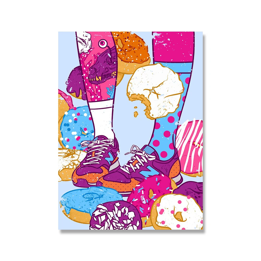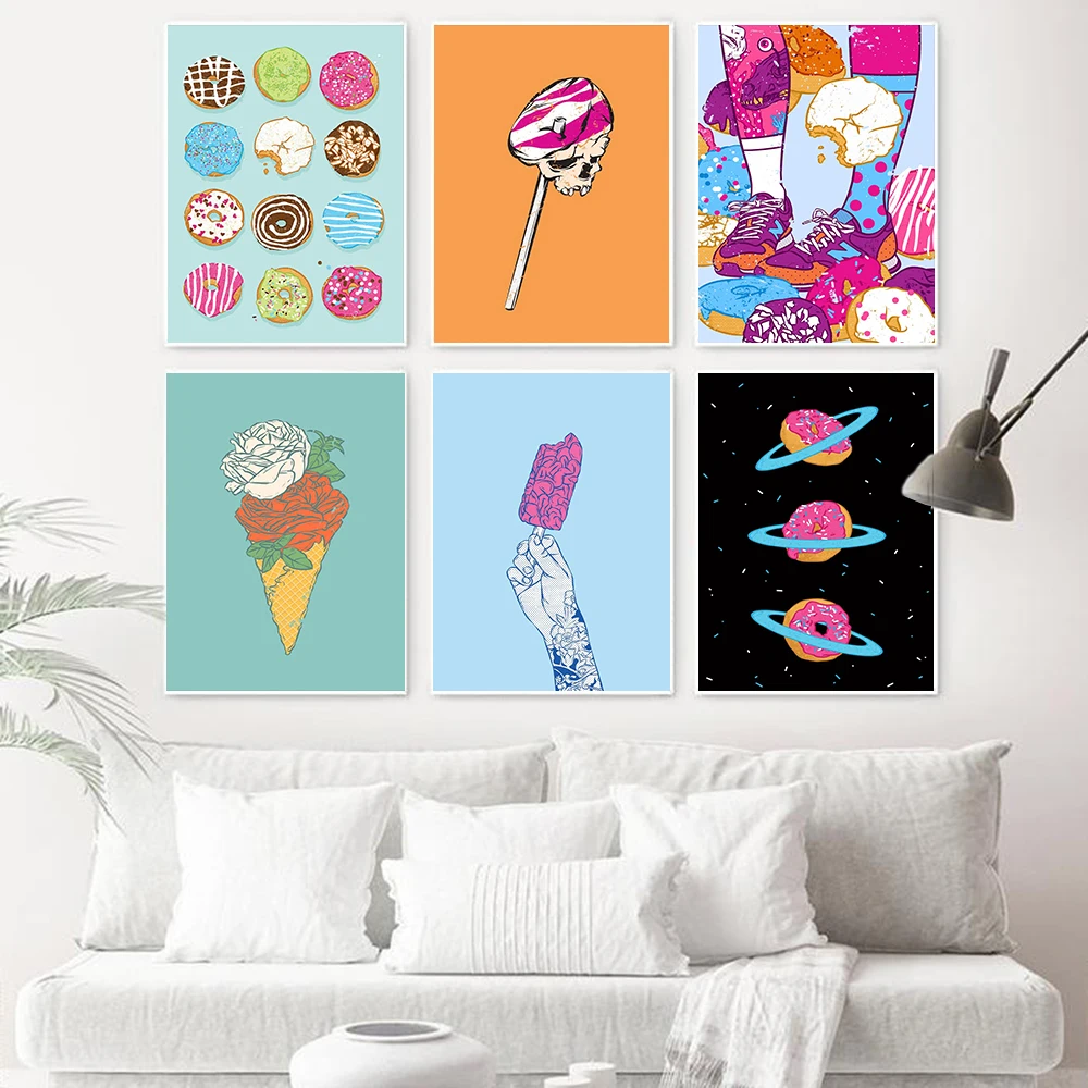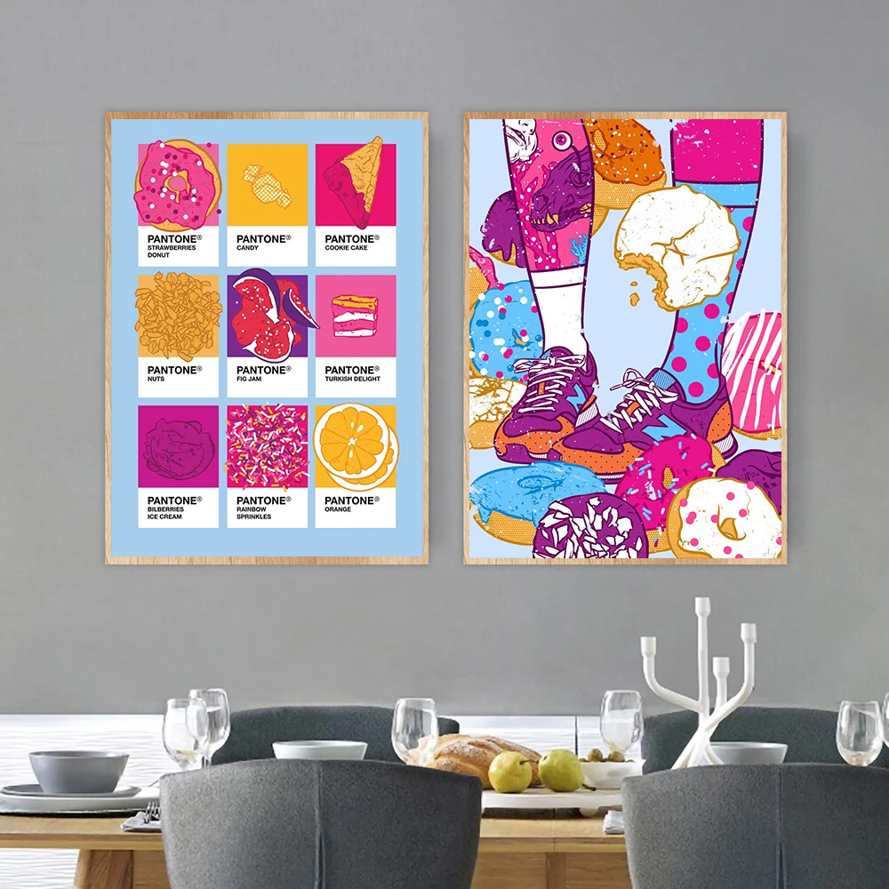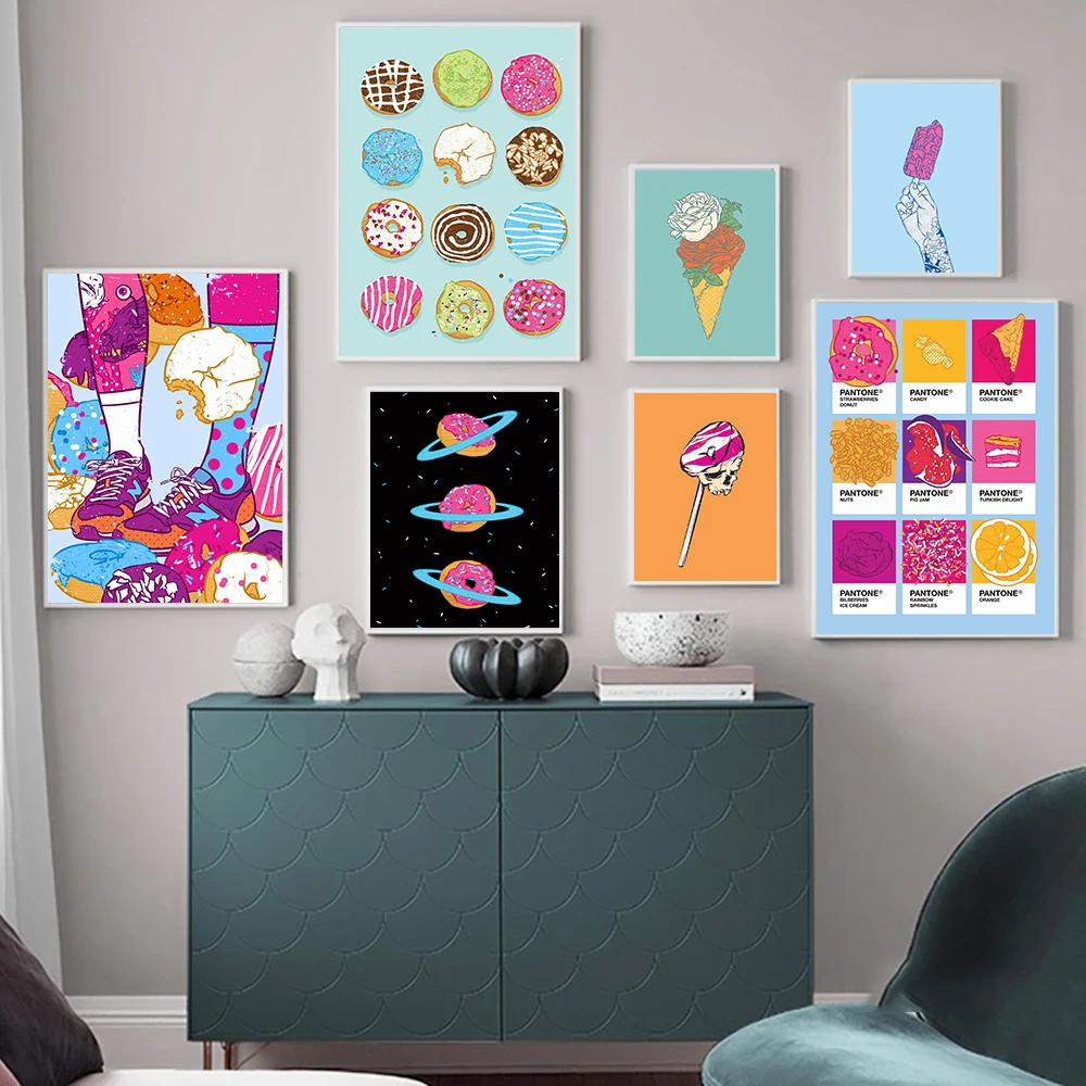 Картина на холсте с изображением вкусного цветного пончика мороженого, Скандинавская картина Пантон, настенные картины для кухни, украшение для дома