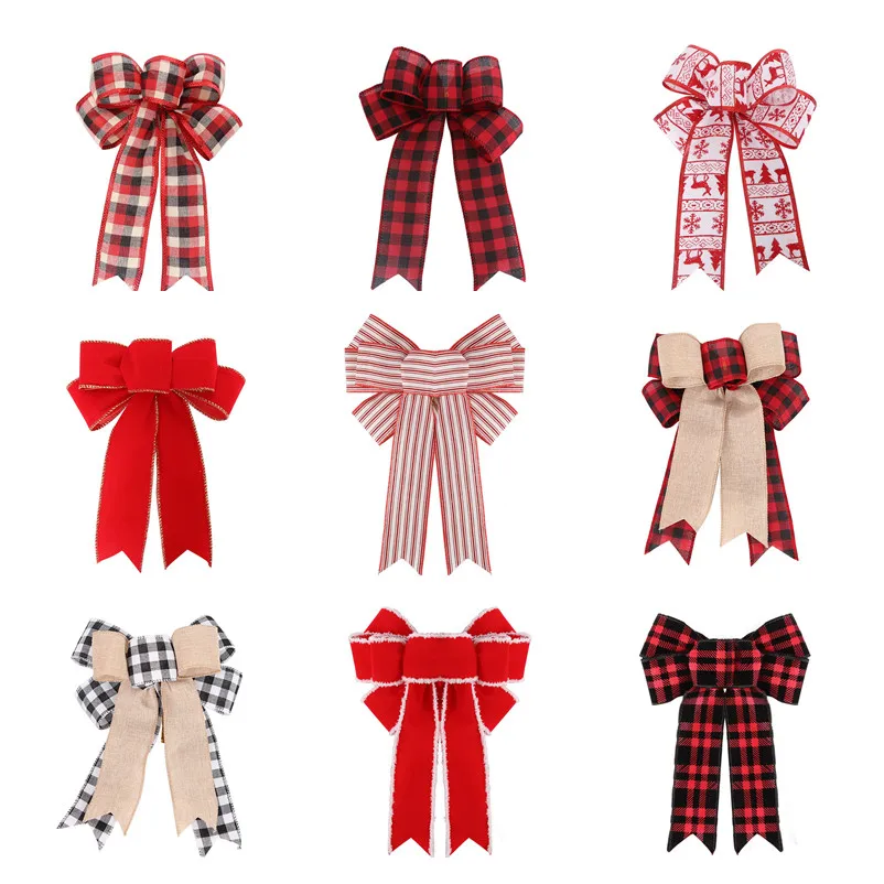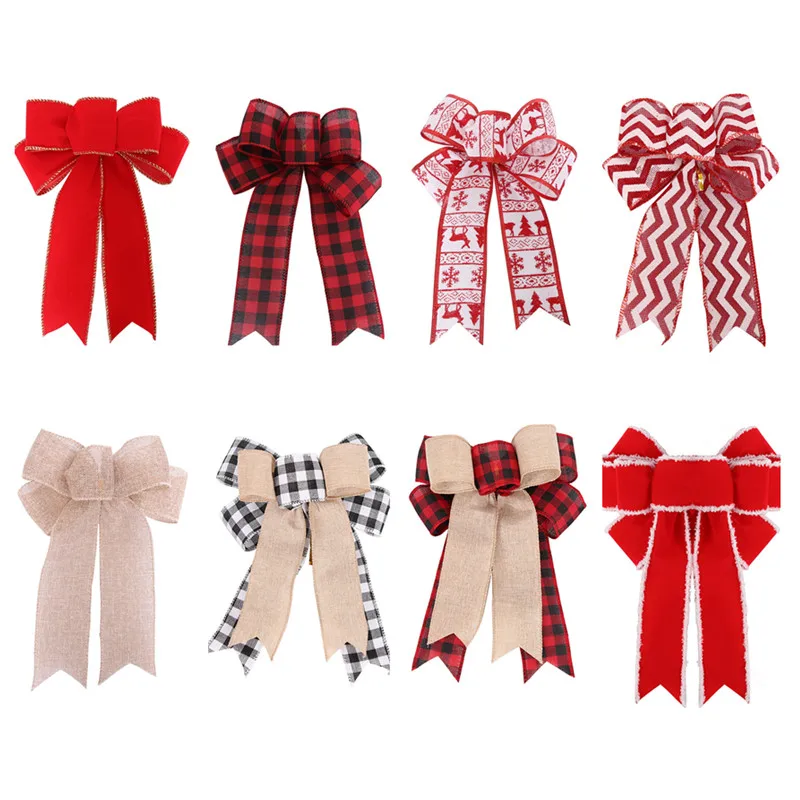 Рождественская лента, банты, искусственная ткань, льняной бант, рождественские украшения для дома, новогодние подарки, декор для нового года и свадьбы