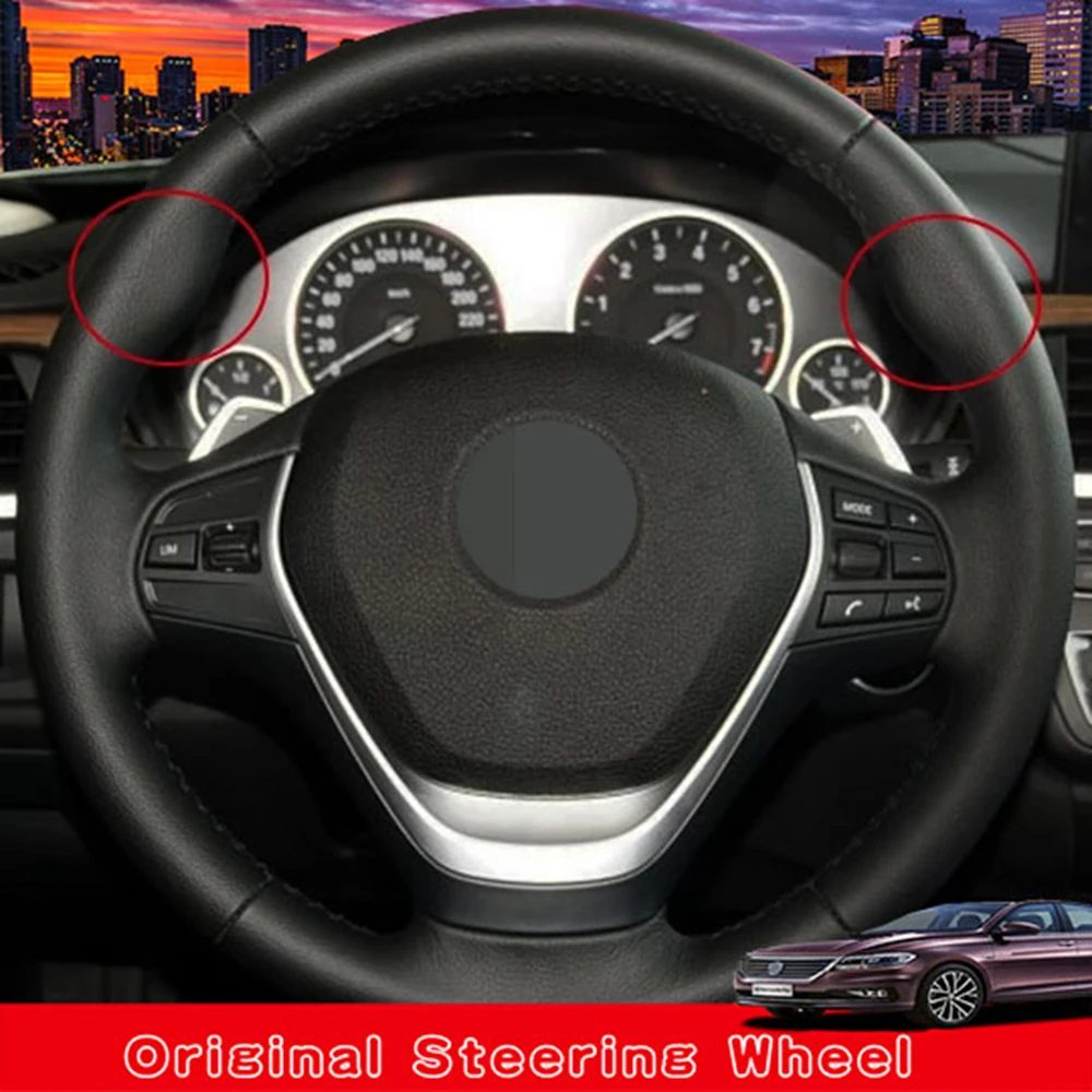DIY сшитый вручную черный чехол рулевого колеса автомобиля из искус...