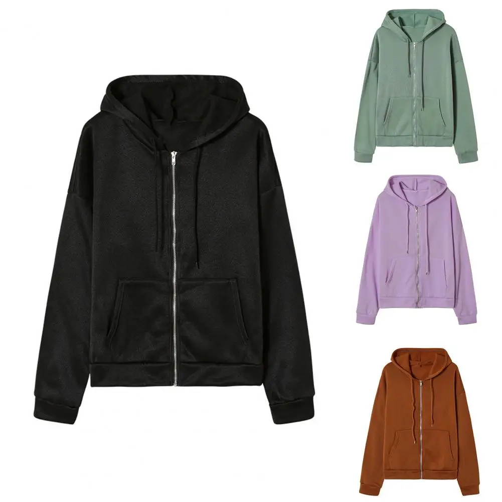 Женские толстовки с капюшоном на молнии, толстый однотонный свитшот на завязках, пальто для повседневной носки, женские толстовки с капюшоном