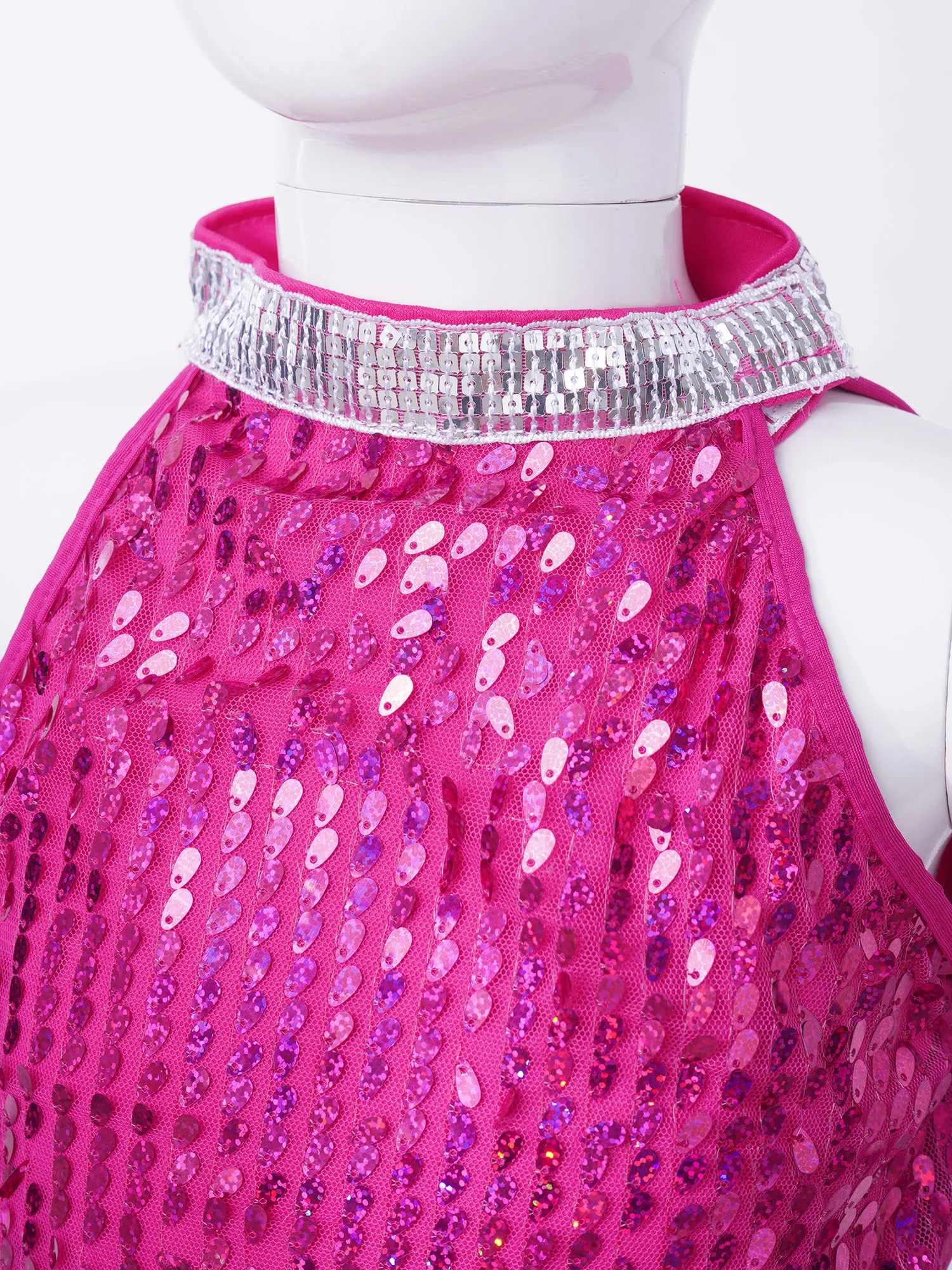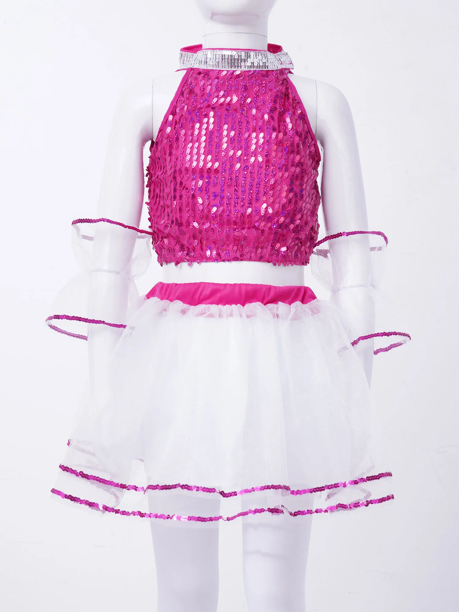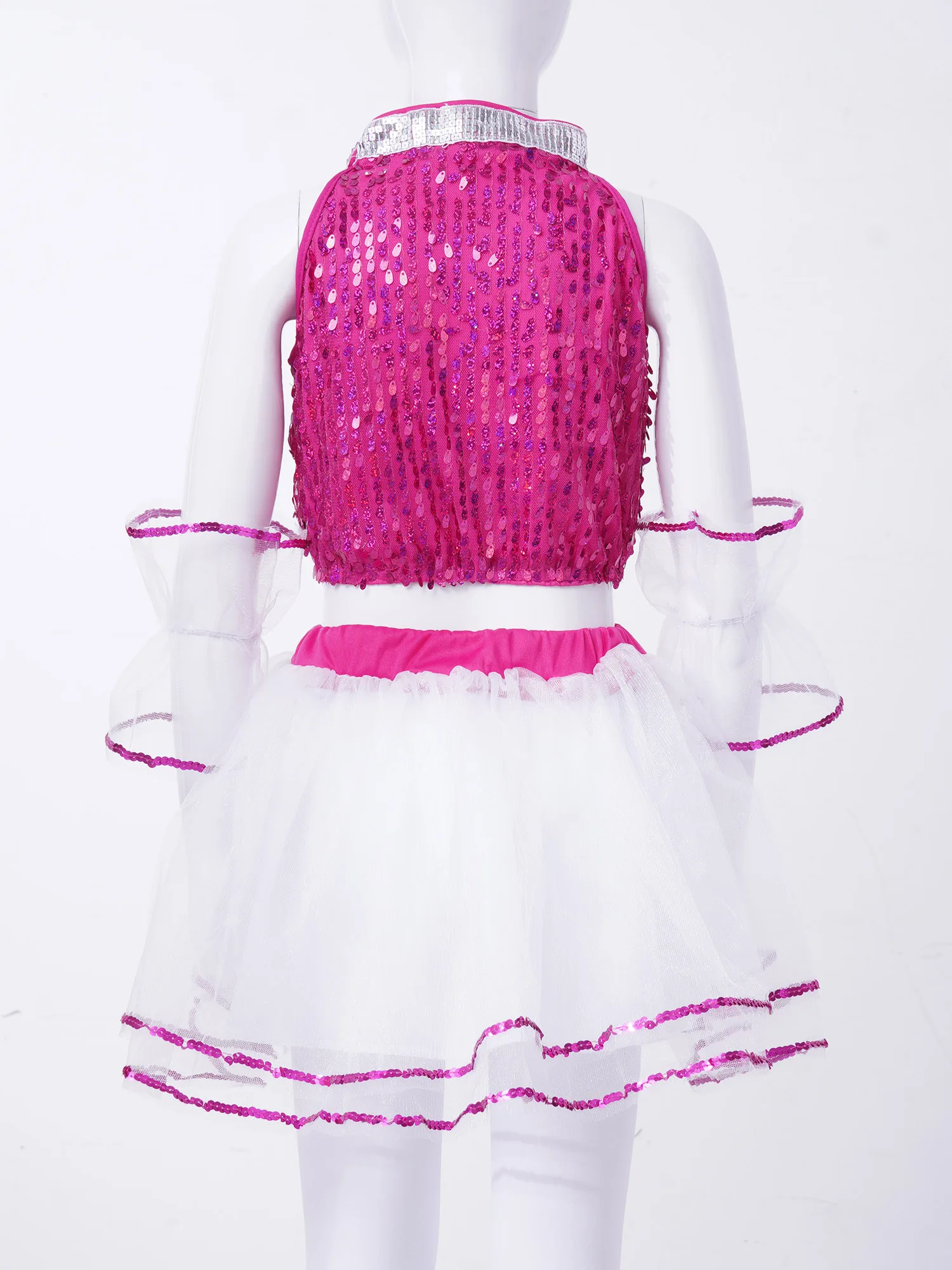Детский костюм для джазовых танцев, розового цвета, без рукавов, с блестками, Сетчатое платье-пачка