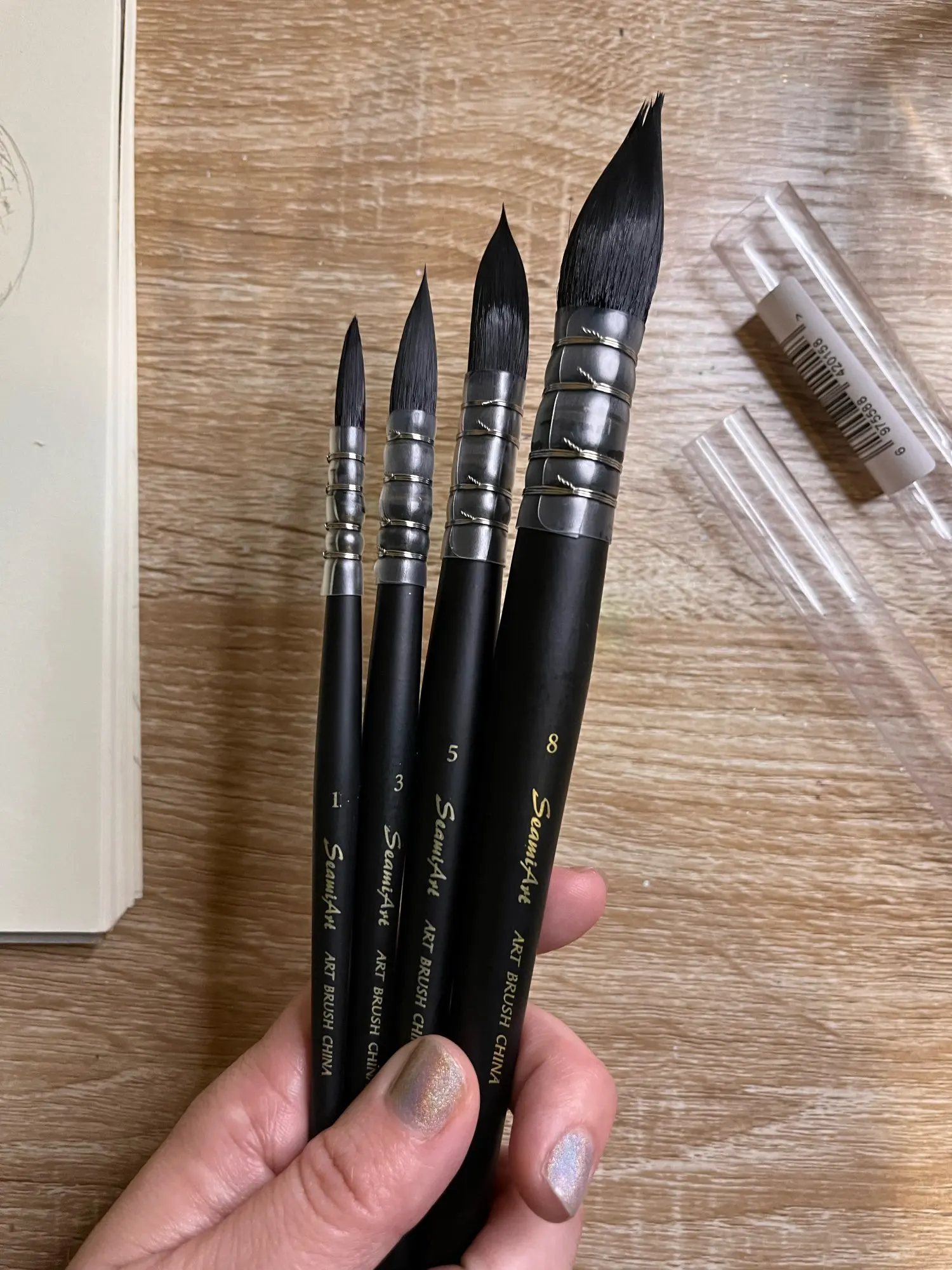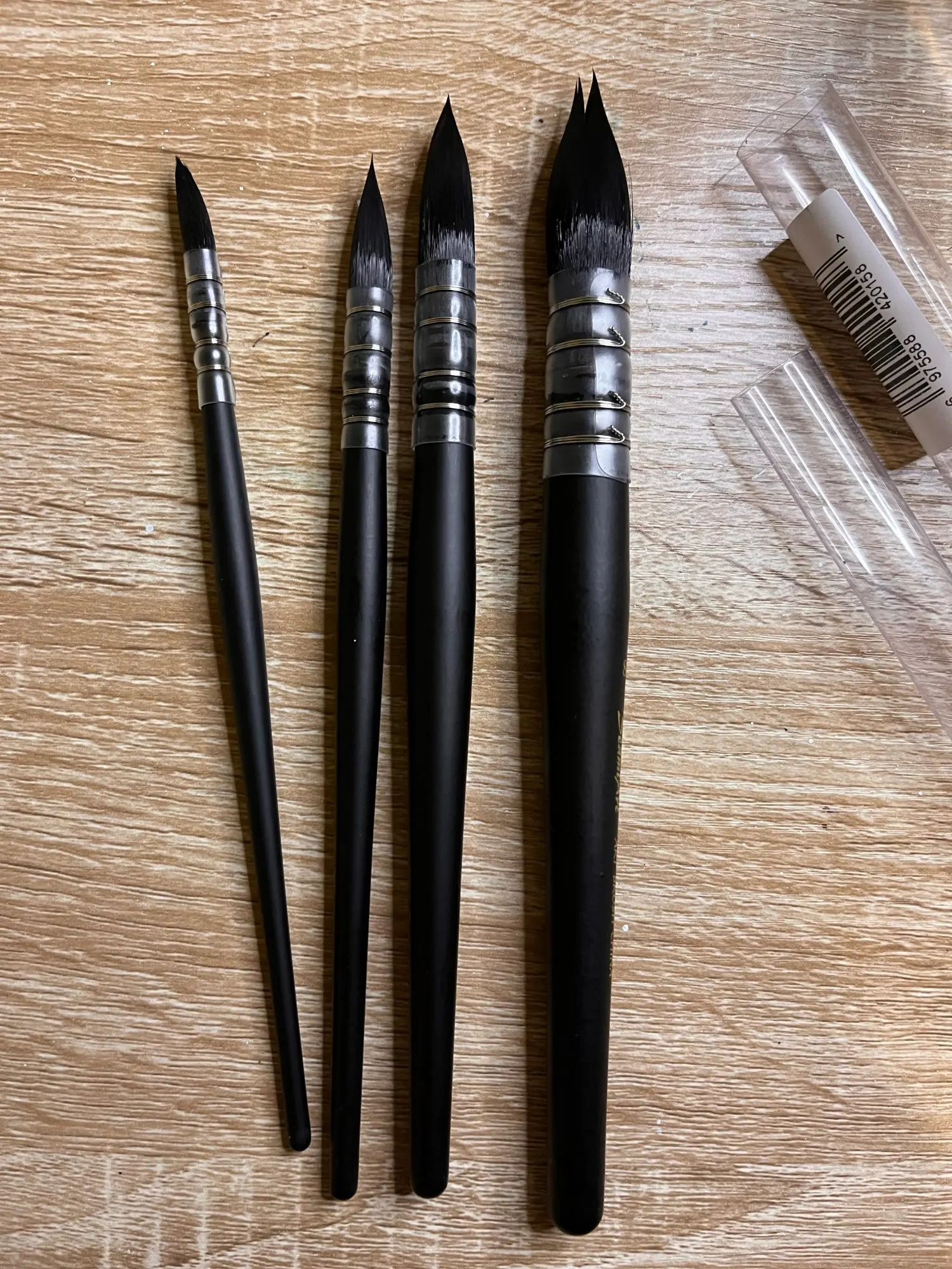 Отличная кисть для акварели - хорошо держит воду, достаточная жесткая, чтобы прописывать тонкие линии, хотя я брала размер 3 (которая в РФ равна примерно 9 размеру). Если вы занимаетесь ботаникой, кисть отличная для прорисовки листьев и лепестков- рекомендую!
