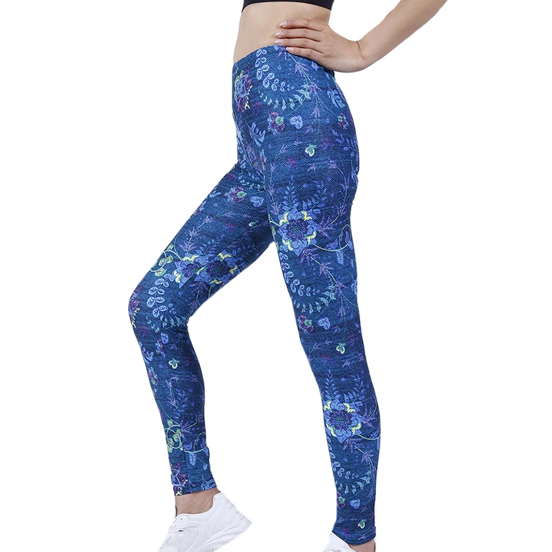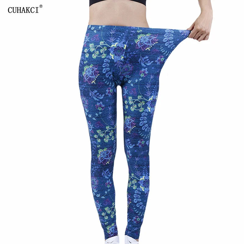 Женские эластичные леггинсы CUHAKCI, летние леггинсы с синим цветочным принтом, Новое поступление