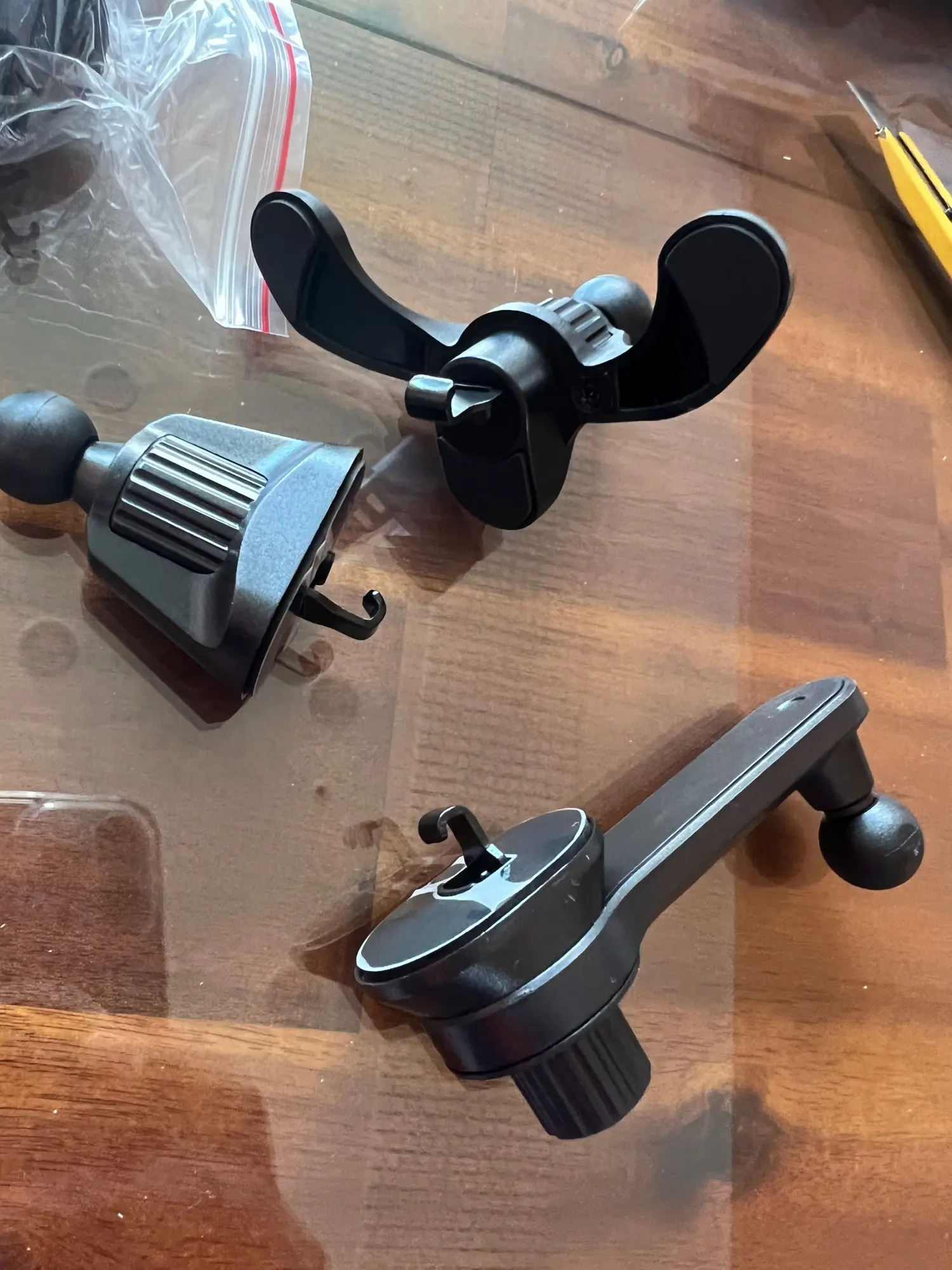 Пришло быстрей срока, диаметр крепления для автомобильных зарядок стандартный, может немного больше, на держит лучше. На решетку bmw f10 встала с нюансом: крючок зажима надо располагать снизу а не сверху решетки. Тряска для такого рычага минимальна и зажим хороший.