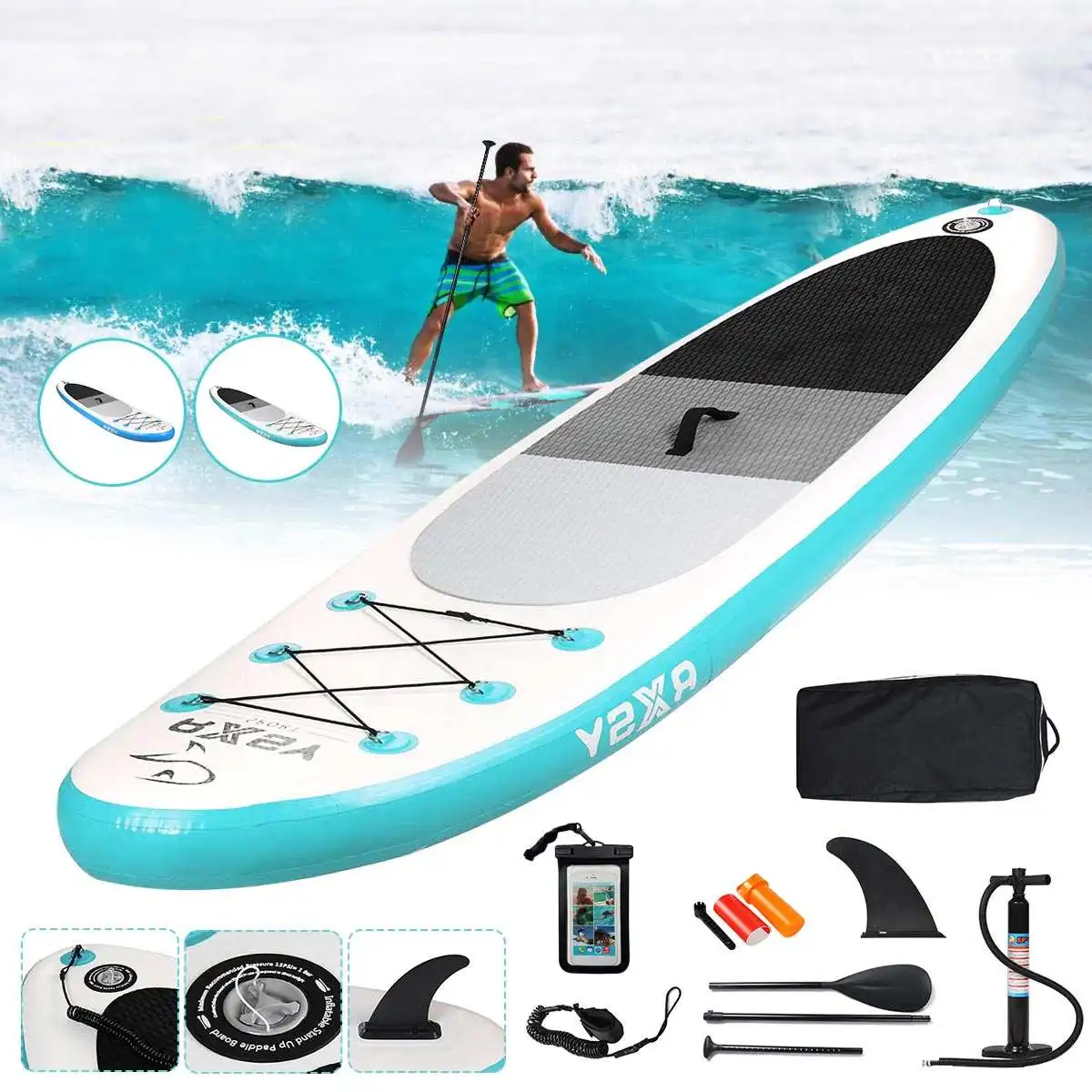 Доска SUP Stand Up Paddle, доска для серфинга 320 см, ауфбластер + весла для серфингаОсобенности:-- SUP надувная доска для серфинга: длина: 320 см (10,5 футов); Ширина деки: 76 см (30 дюймов); Толщина: 15 см (6 дюймов), толстое жесткое основание 6 дюймов улучшает стабильность и равновесие в положении стоя. Регулируемые лопасти лопастей позволяют водителю менять длину лопасти в зависимости от его высоты нескользящий коврик для палубы очень подходит для начинающих и опытных.-- Высокое качество: доска Stand Up paddle-самая стабильная надувная опора на рынке. SUP изготовлен из двухслойного ПВХ военного класса, который использует ламинированные поверхности из ПВХ плотностью 10200D и выполнен в плетении с наклонным стежком. Эти материалы делают наши надувные доски настолько жесткими, что выдерживают до 20 фунтов на кв. дюйм. Этот материал делает конечный результат наших надувных досок для серфинга легче и прочнее.-- Нескользящий: тепловой рельефный ЭВА-колода-обеспечивает безопасную основу и комфорт.-- Создано для разведки: если вы любите наслаждаться открытой водой, побалуйте себя надувными веслами, которые приведут вас в приключения, как никогда раньше. Когда вы стоите на собственной доске для лопастей, вам просто нужно воспользоваться преимуществами. Идеально подходит для озер, океанов, прудов, рек с низким потоком. 3 нижних ребра повышают общую скорость, управляемость и управление рулем для упрощения использования.-- Удобство транспортировки и хранения: Легкий и компактный; Насос высокого давления надувается быстро за 5 минут; Быстро сдувается за 3 минуты. С практичным рюкзаком можно хранить надувную доску для серфинга и другие компоненты для хранения и транспортировки. Где бы вы ни находились, вы можете наслаждаться надувной доской. При надувании и поддержке Серфер весит до 350 фунтов