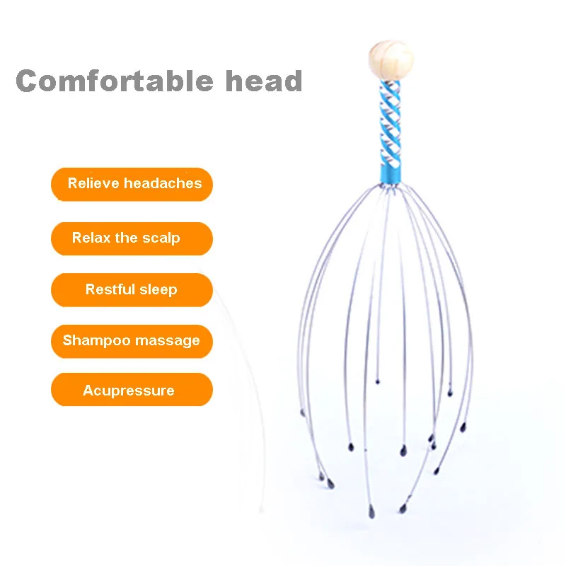 Массажер для головы осьминога, релаксация головы, массажер для тела, снятие мышечного напряжения, усталости, металлическая головка массажный инструмент