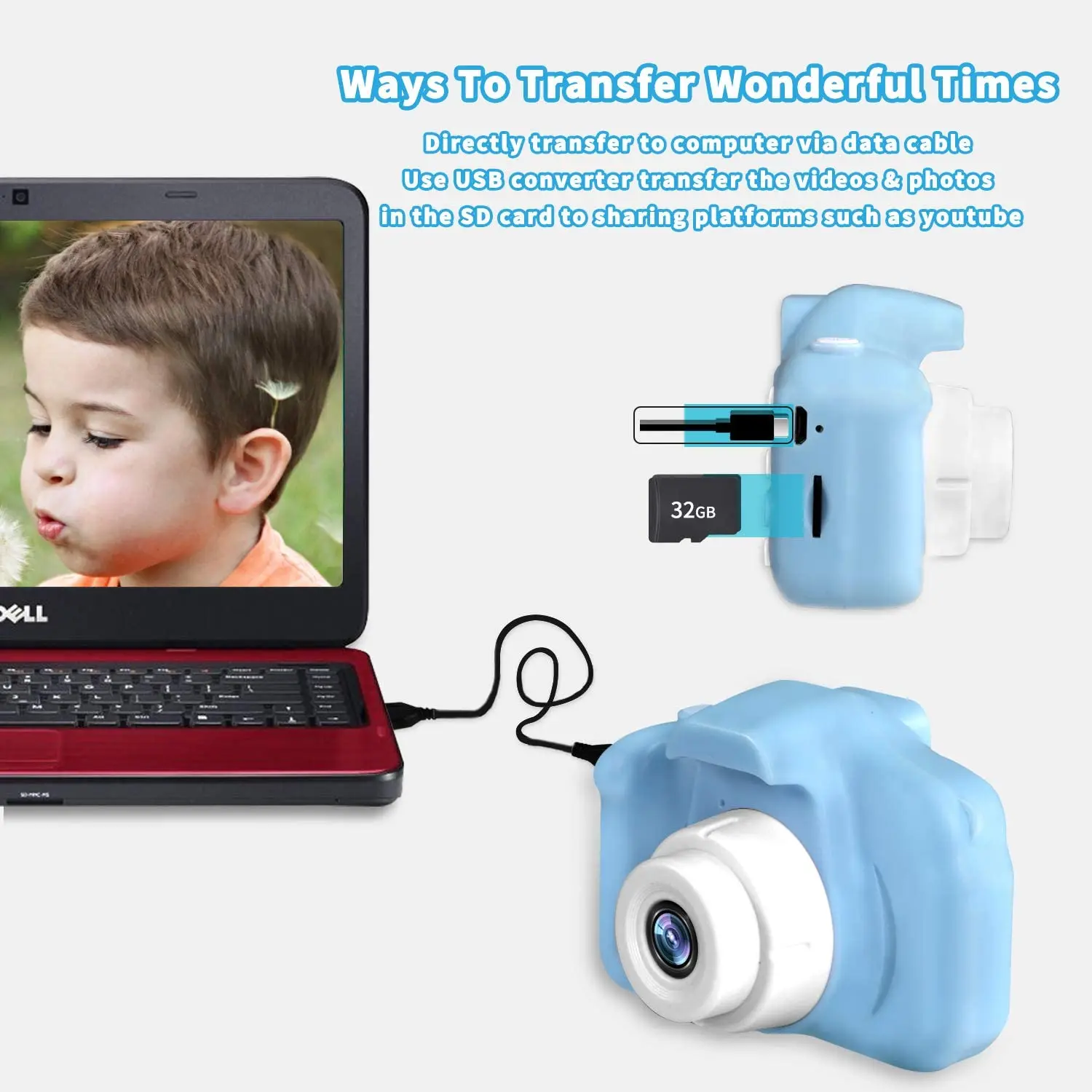 Ответ:Детская камера не имеет собственной функции печати, blut поставляется с tf-картой 32G (карта micro SD), вы можете подключить его к кардридеру, а также через компьютер или принтер и печать.