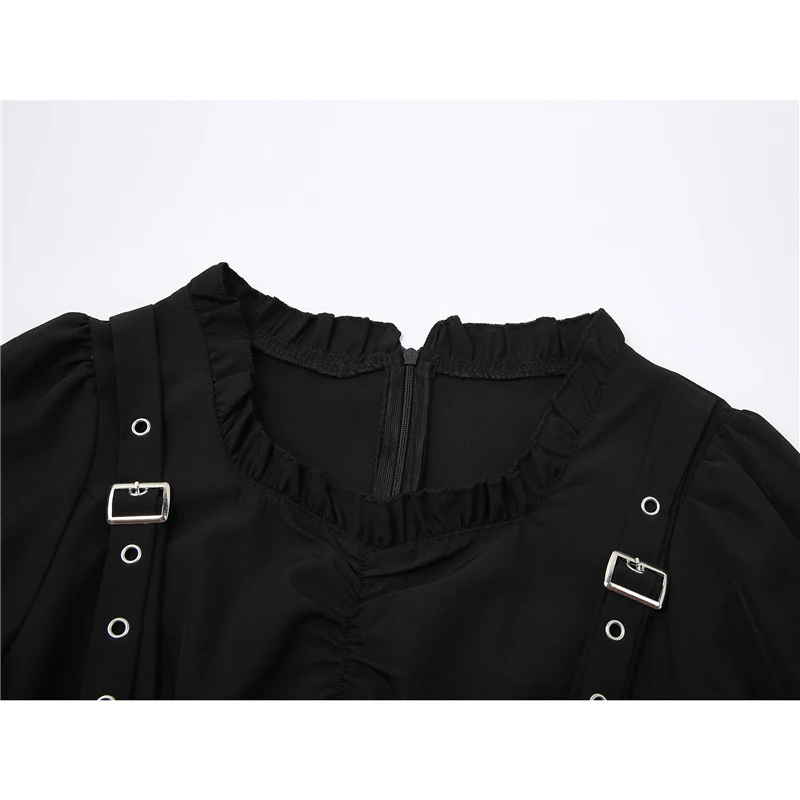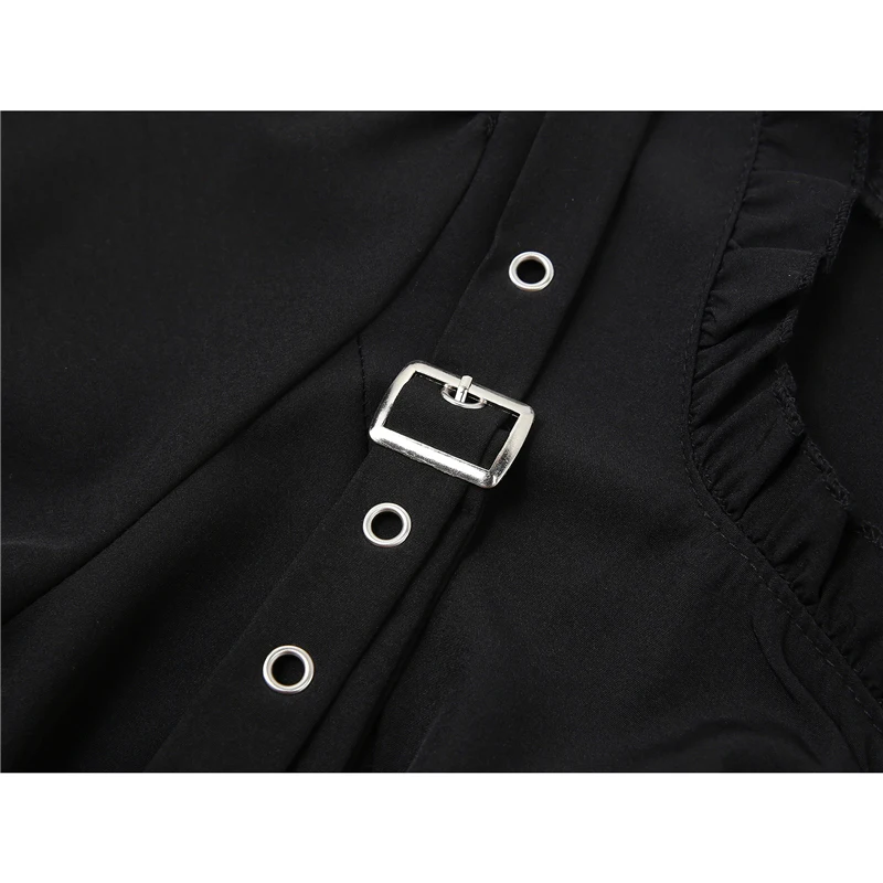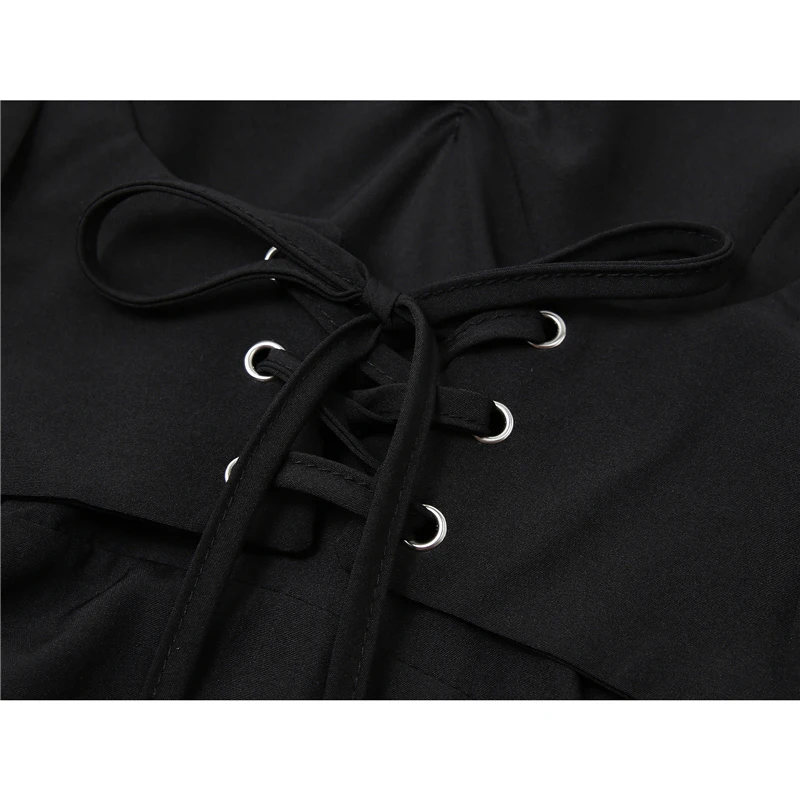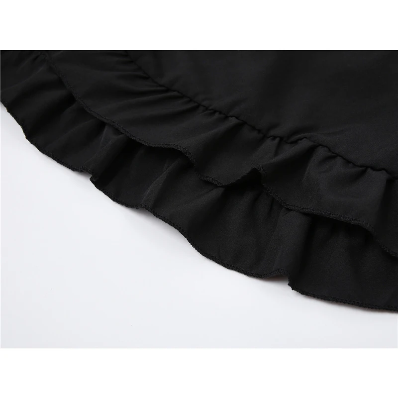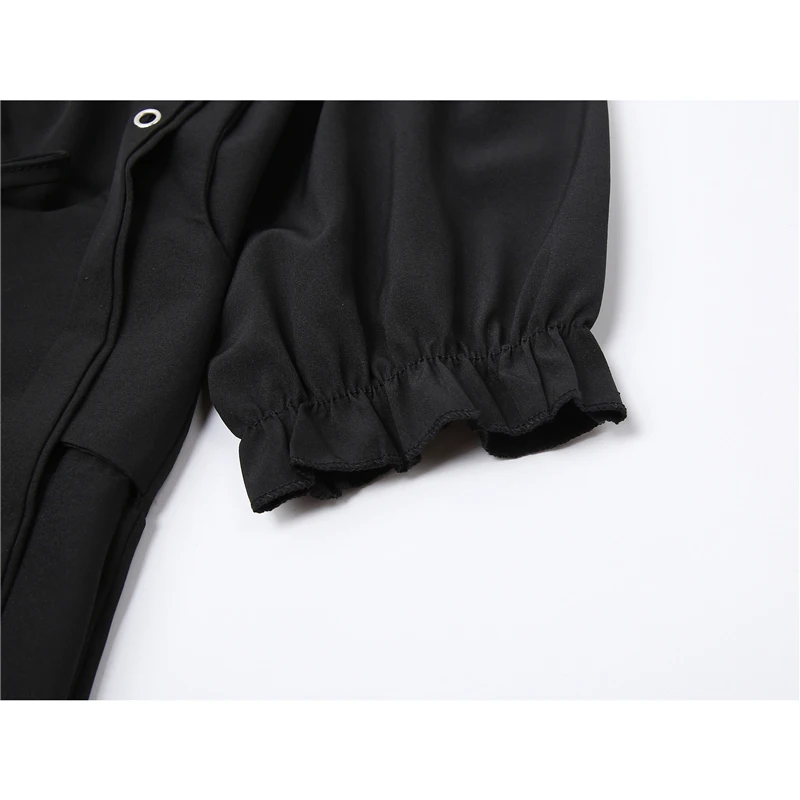 Женское винтажное платье с рюшами, черное платье-мини в готическом стиле с пышными рукавами, Бандажное платье в стиле Харадзюку, лето 2021