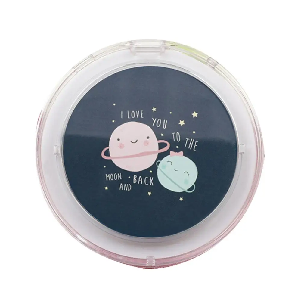 Характеристики:Это зеркало для макияжа достаточно маленькое, чтобы взять куда угодно.Зеркало оснащено светодиодами, которые осветят ваше лицо и обеспечат вам естественный дневной свет для наиболее естественного вида.С мультяшным рисунком, выглядит так мило и подарит вам хорошее настроение.Тип: светодиодный зеркало для макияжаМатериал: пластик + стеклоХарактеристики: светодиодный светильник, портативный, перезаряжаемый, складнойДиаметр: 8,3 см/3,27 ", Толщина: 2 см/0,79" (прибл.)