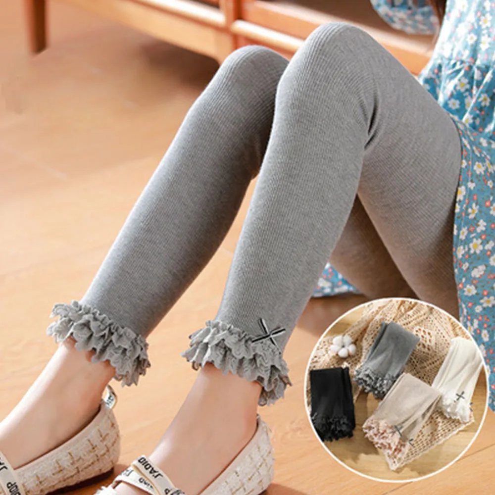 Леггинсы для девочек, кружевные колготки, Детские хлопковые штаны с бантом, однотонные штаны для подростков, весна-осень 2021