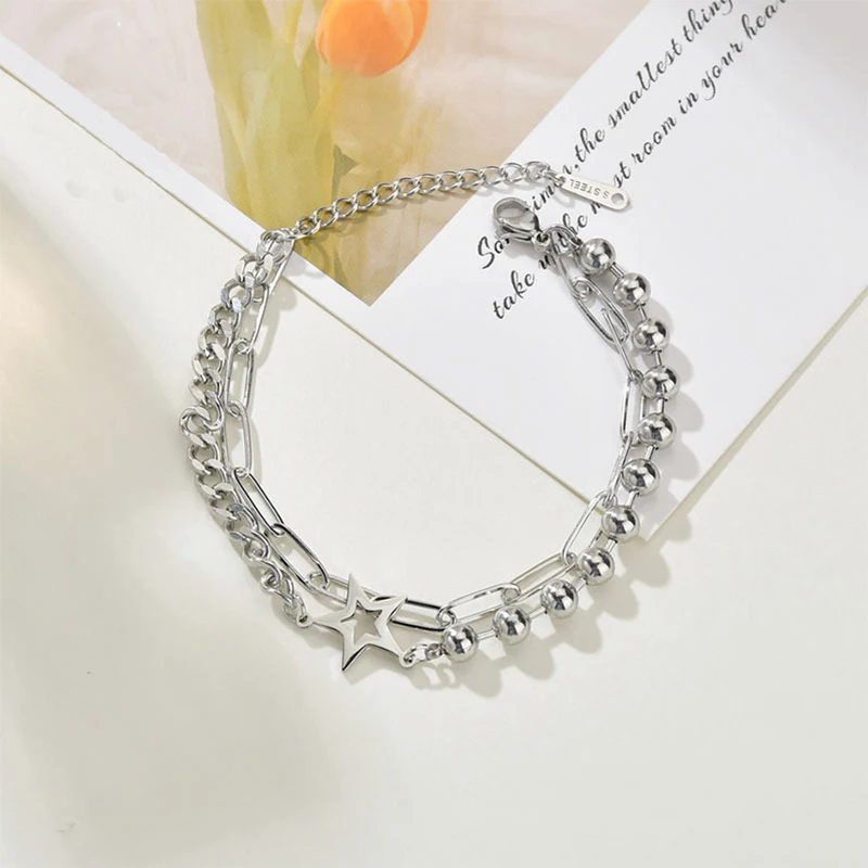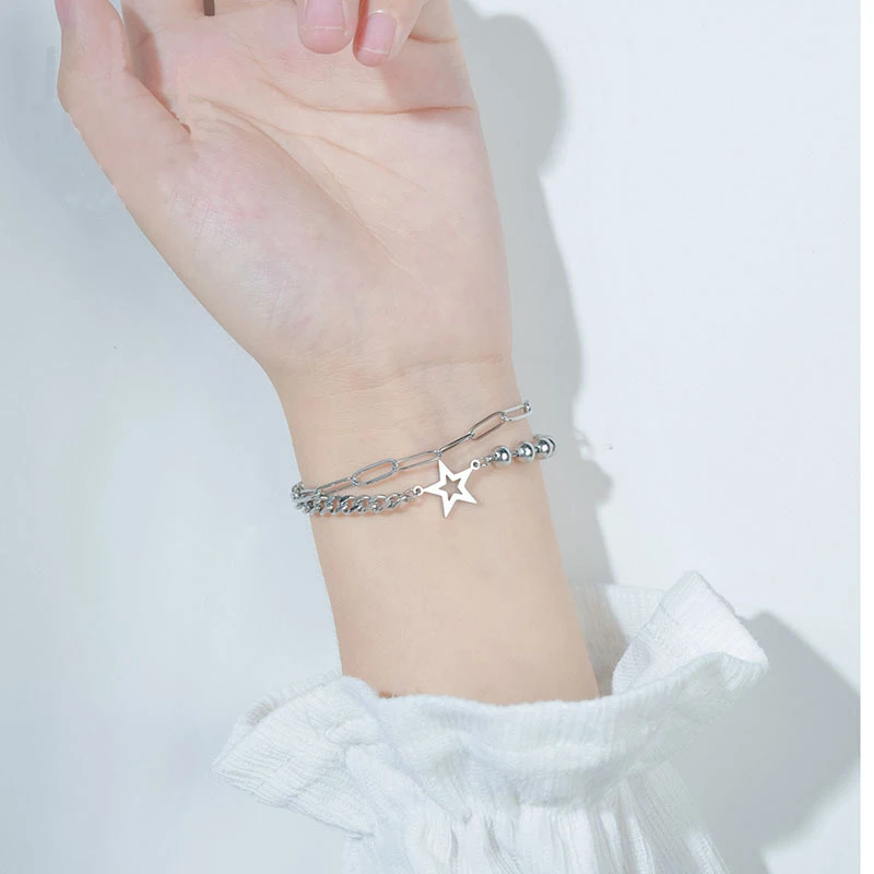 Женский браслет из нержавеющей стали MEYRROYU, двухслойный браслет с бусинами и звездочками, Ювелирное Украшение для вечеринки, 2021