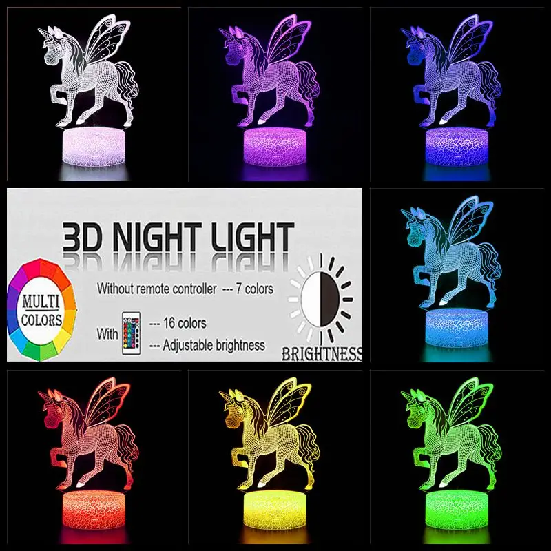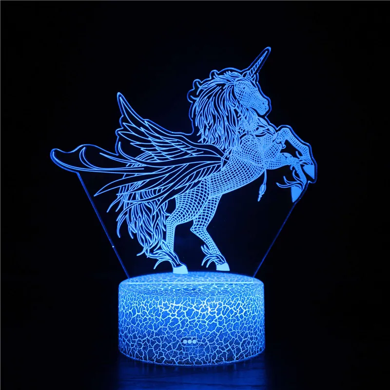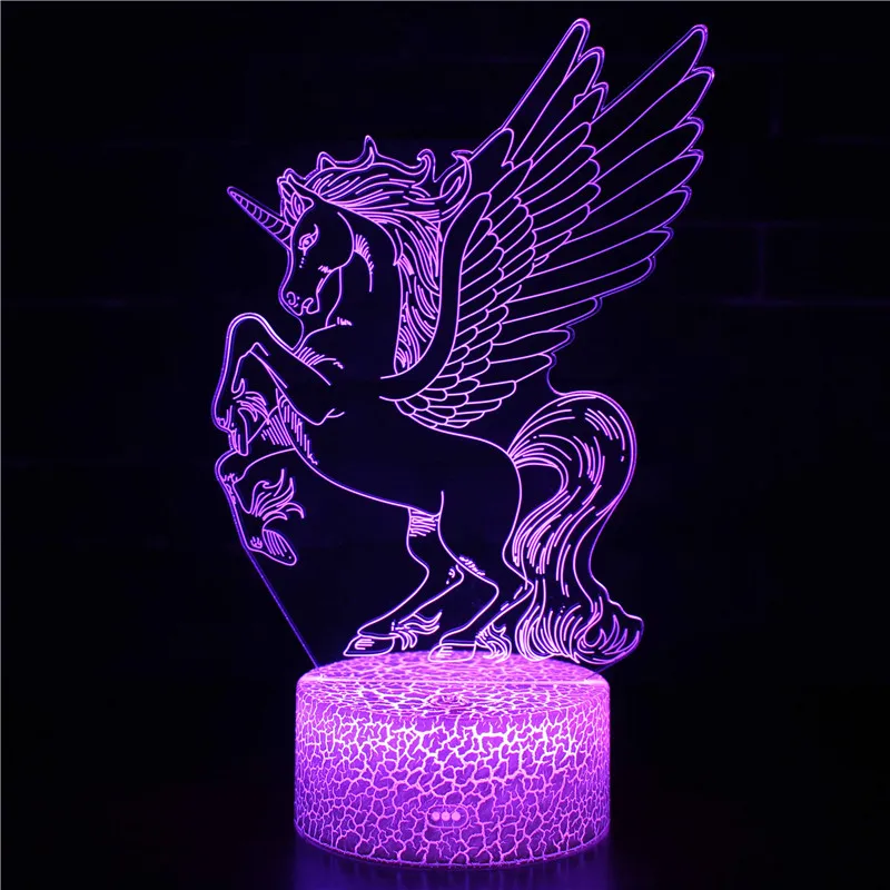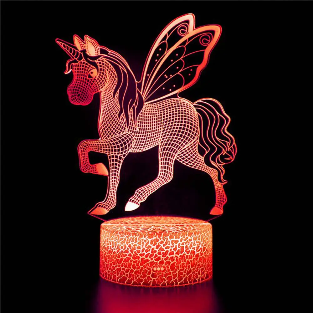 Светодиодная настольная лампа, 3D ночник, настенный светильник с USB, для единорога, игрушки, светящийся единорог, животное, лошадь, игрушка, подарок на Рождество, Новый Год, день рождения