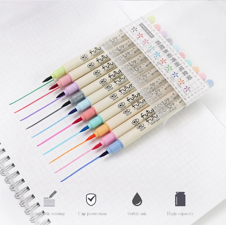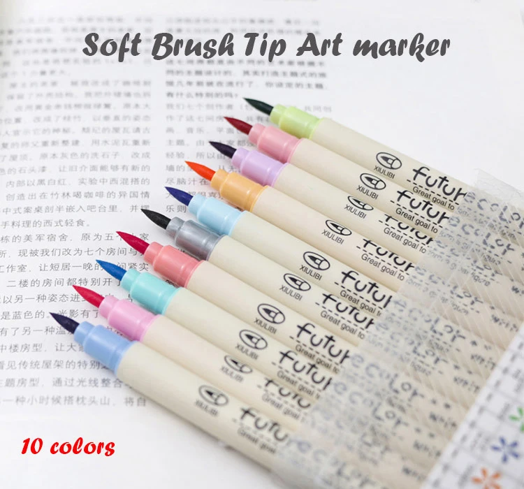 10 шт./набор, набор цветных кистей для рисования, набор кистей для рисования, мягкие цветные маркеры, художественные маркеры, канцелярские принадлежности для рисования, надпись, каллиграфия