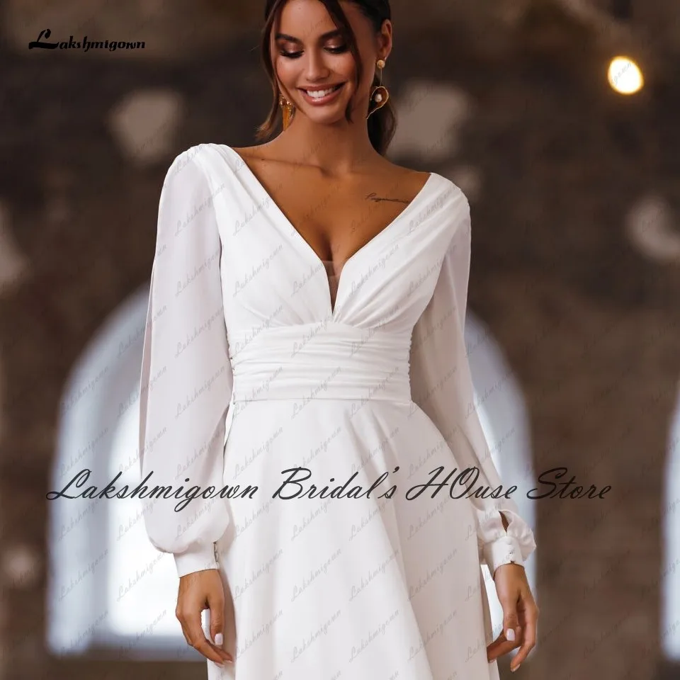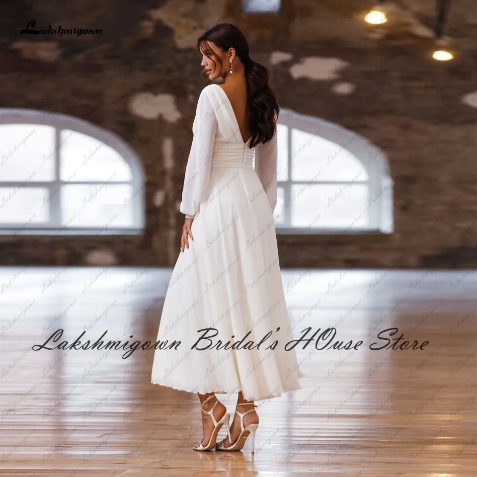 Lakshmigown простое пышное белое свадебное платье с длинным рукавом длиной до середины икры 2022 платье Бода элегантные свадебные платья для чевечерние Ринок