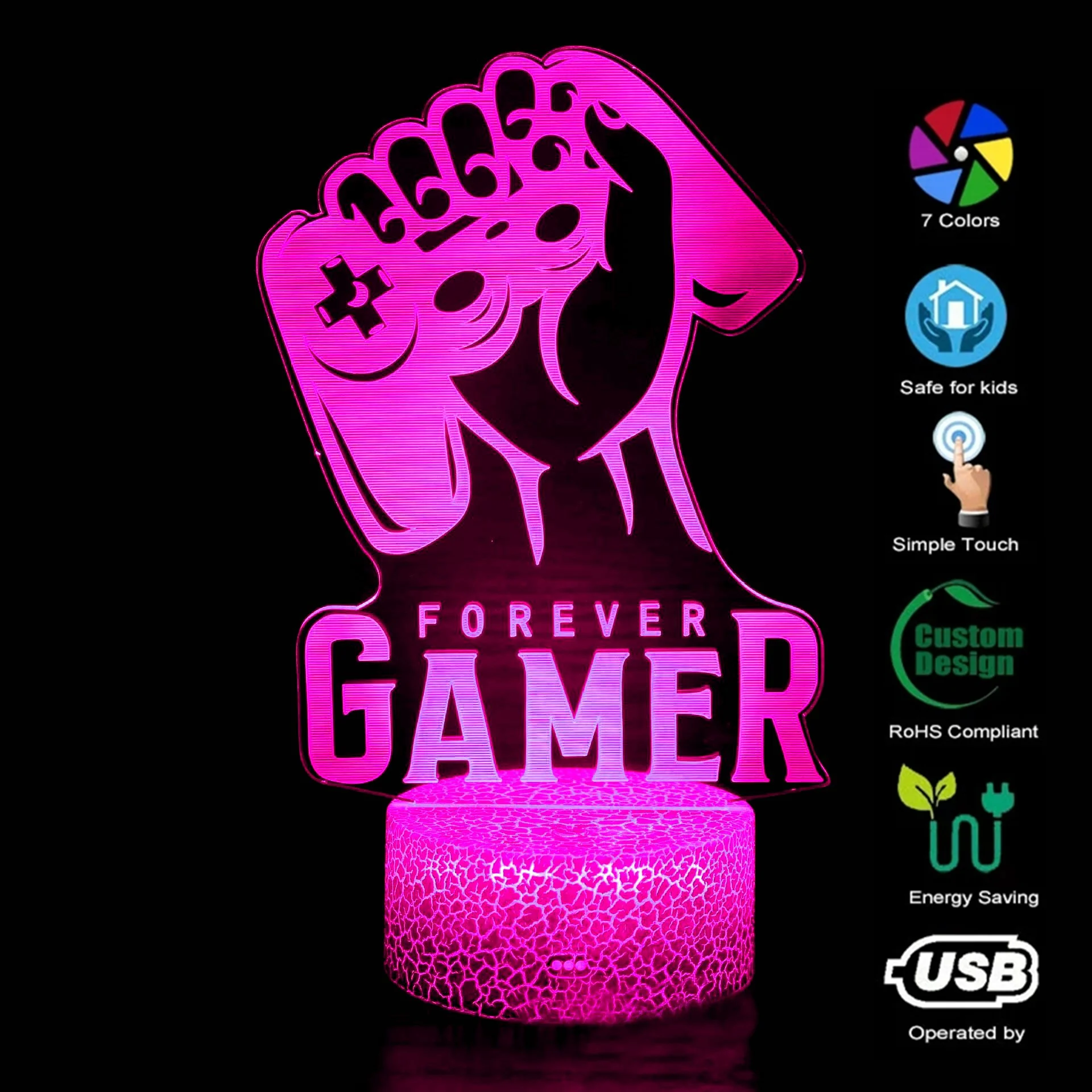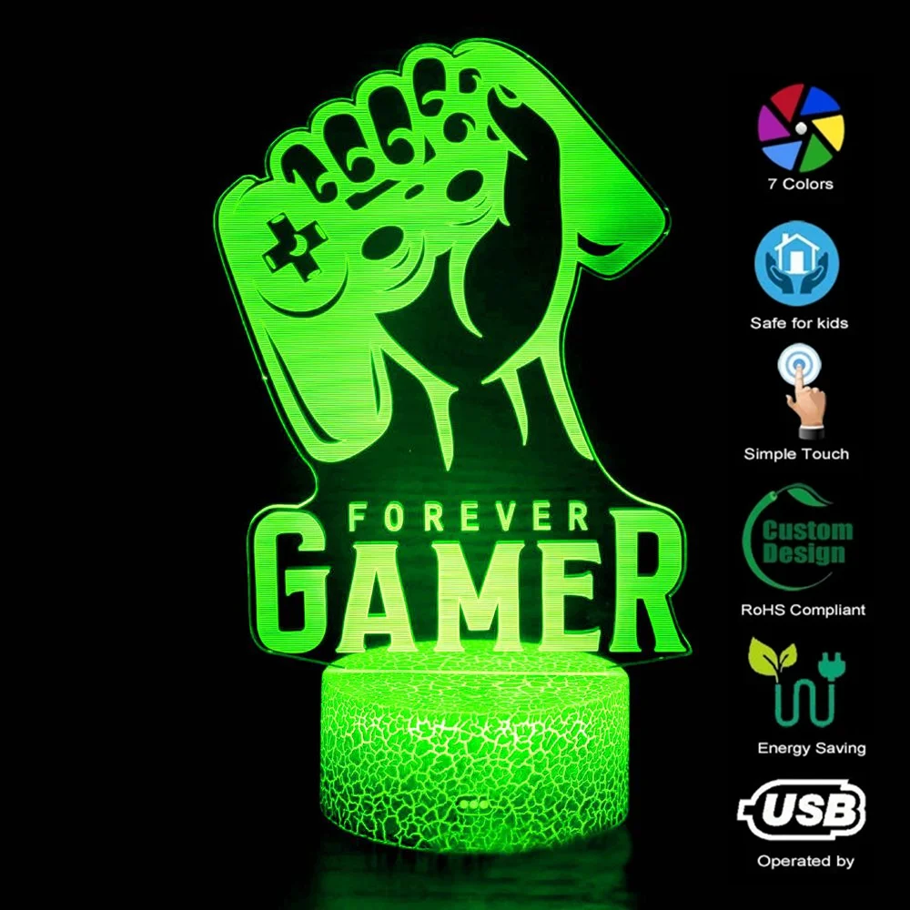 Светодиодные настольные лампы для видеоигр, модный дизайн, USB ночники для детей, подарок для любителей вечной игры, с держателем для геймпада, для спальни