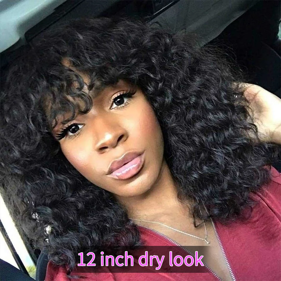 Fumi парик из человеческих волос с челкой, водная волна, без клея, полностью машинное изготовление, глубокий короткий боб для черных женщин, виргинский бразильский вырез фея