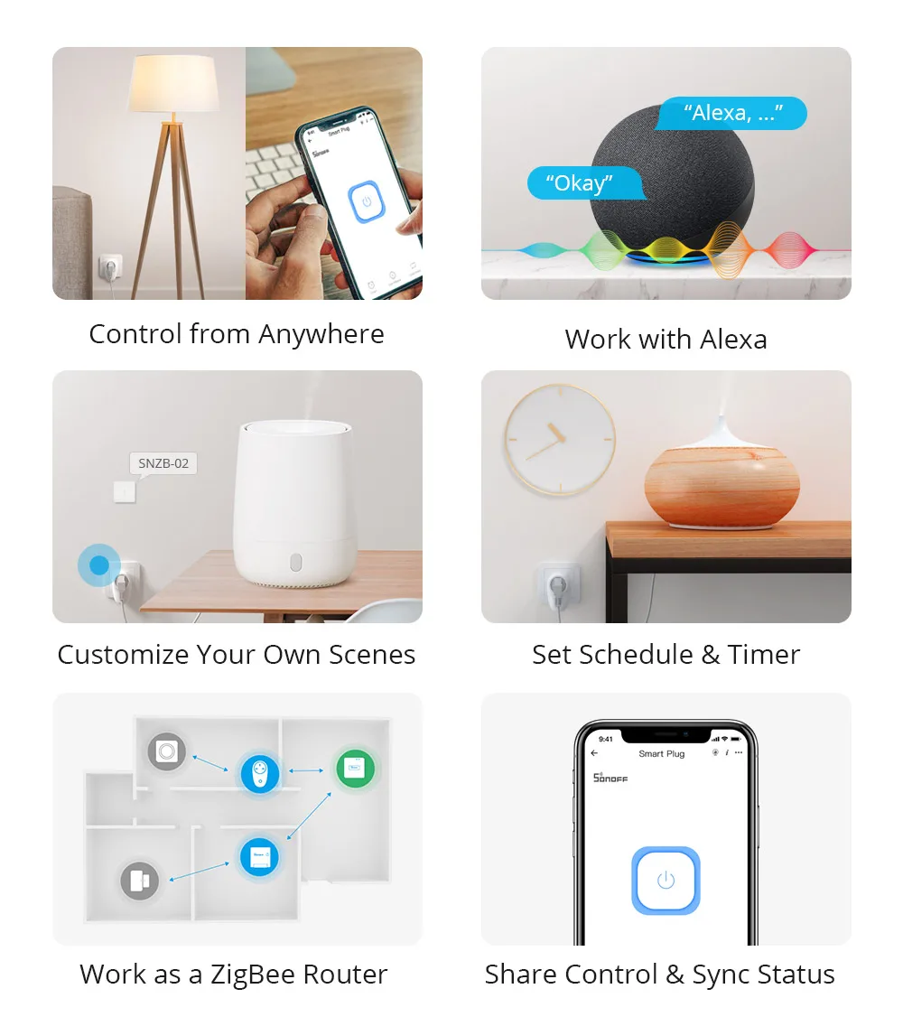 Умная вилка SONOFF S26 R2 ZigBee, хаб стандарта ВеликобританииDEFR, 16 А, с поддержкой голосового управления в Smart Scene, с расписанием времени через eWeLink Alexa Google Home
