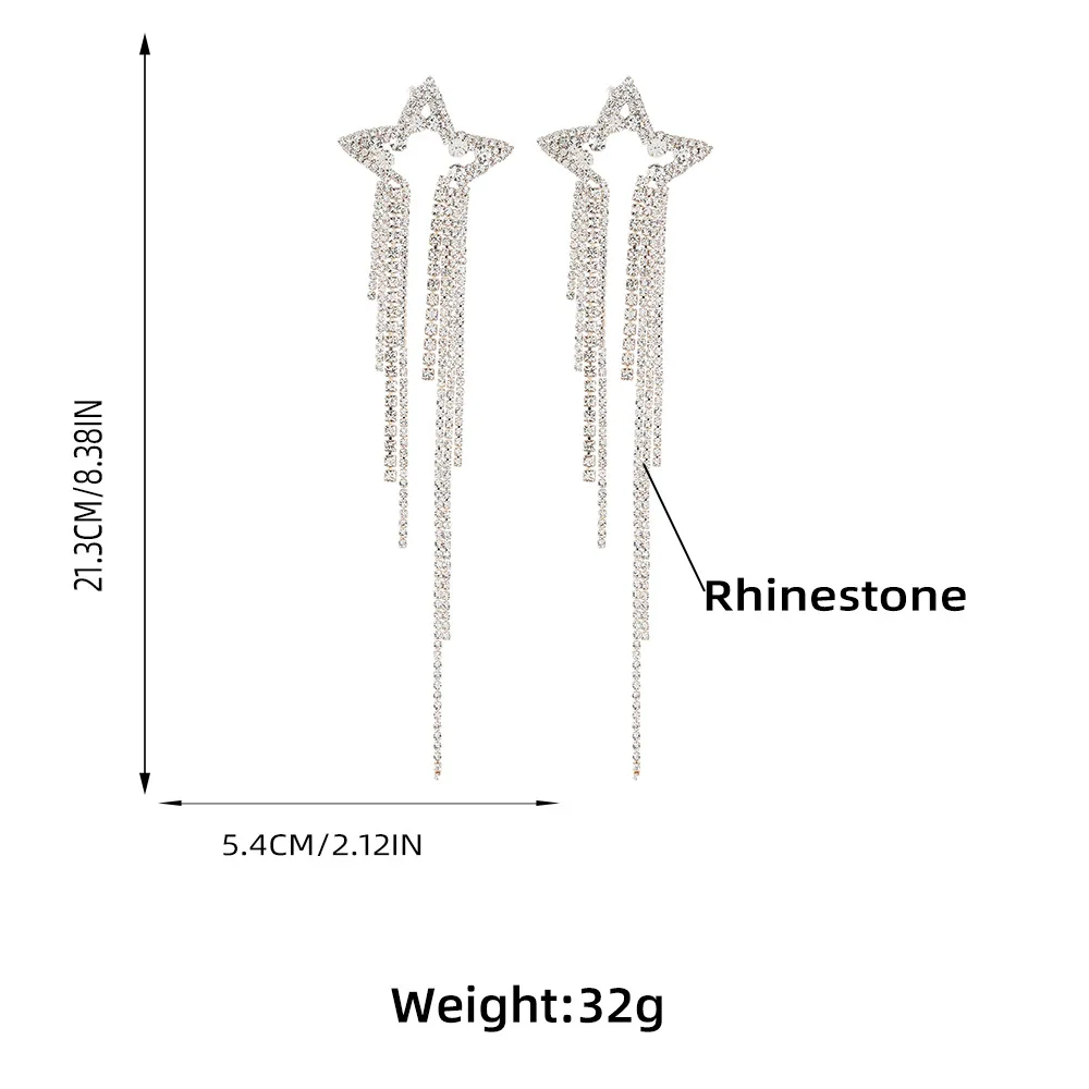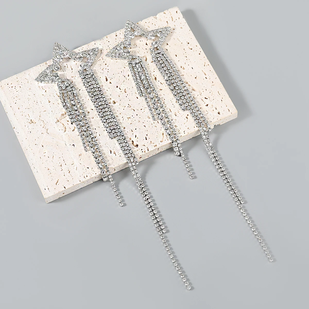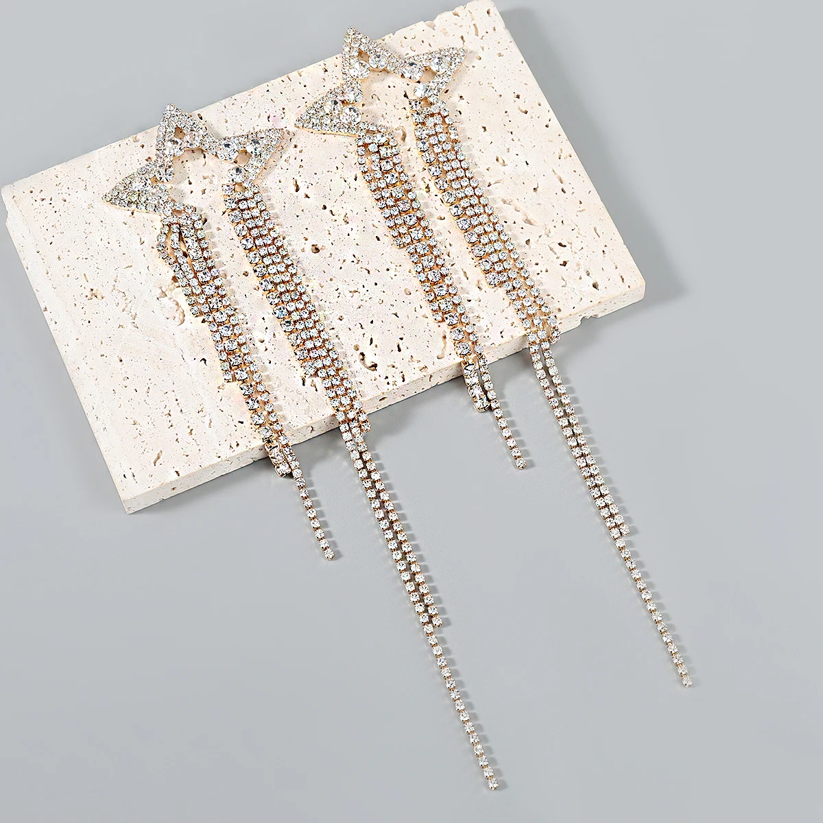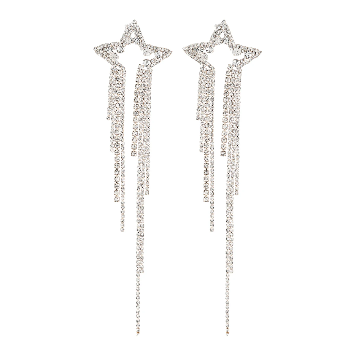 JIJIAWENHUA, новинка, стразы в форме звезды, коготь, цепочка, кисточка, женские серьги, вечерние, свадебные, модные ювелирные изделия, аксессуары