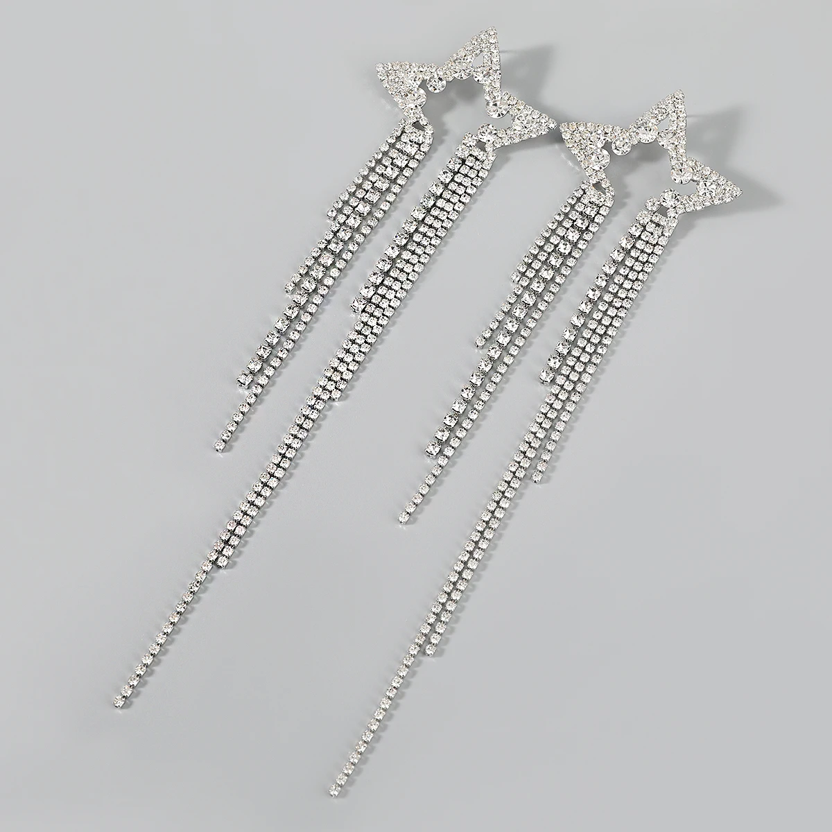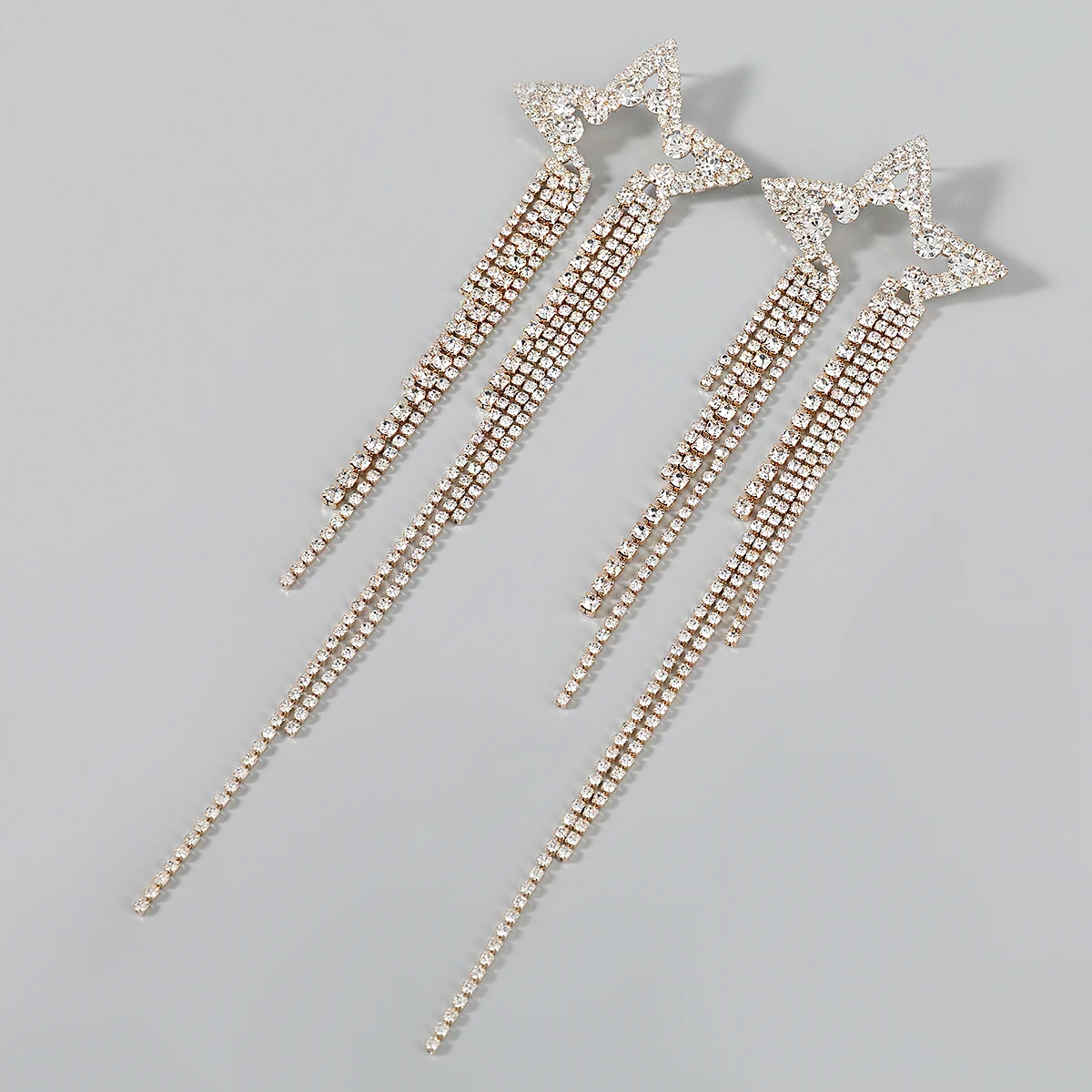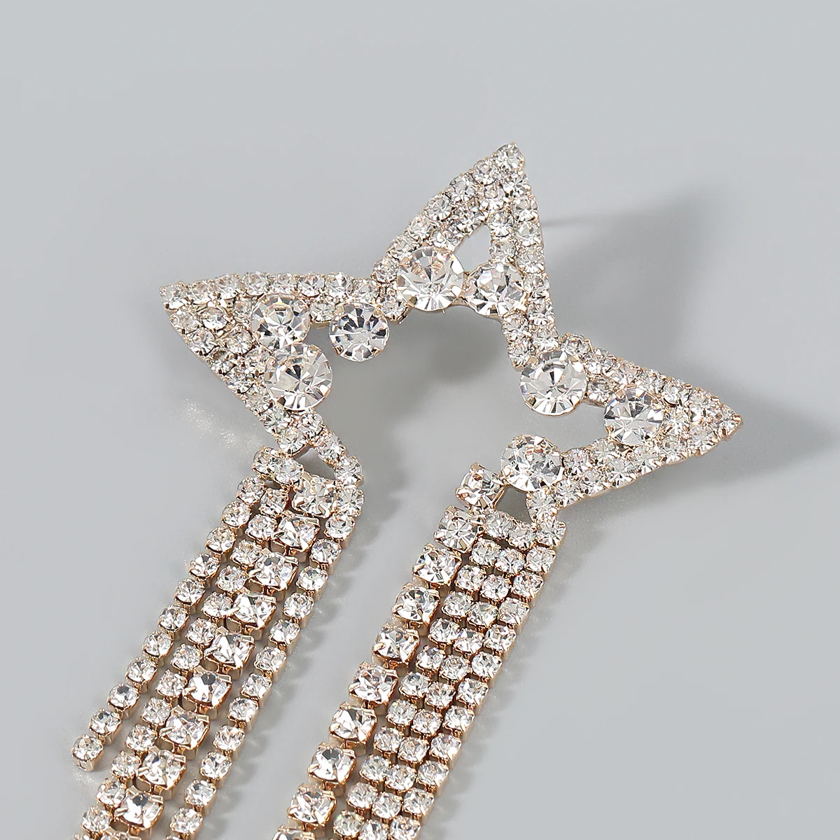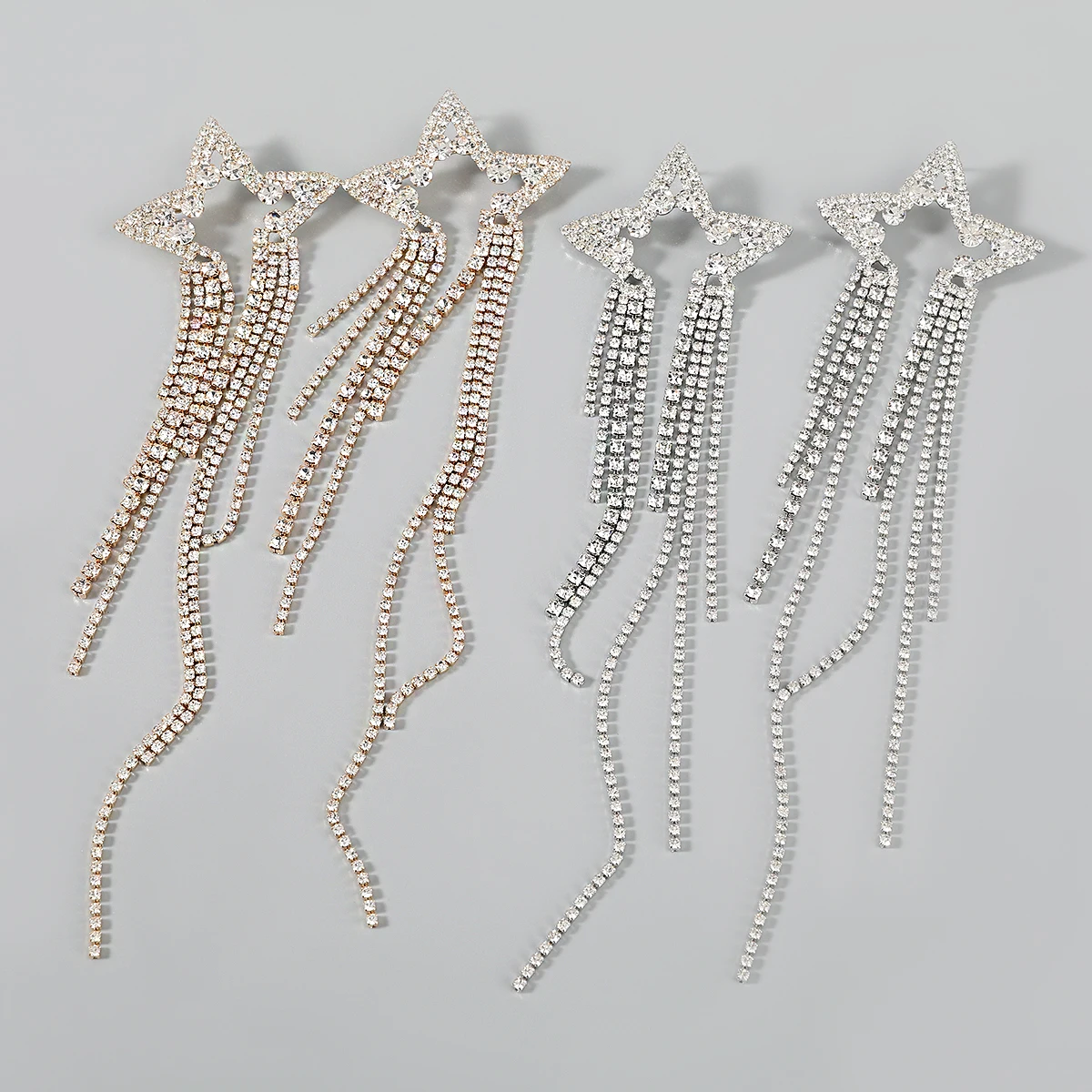 JIJIAWENHUA, новинка, стразы в форме звезды, коготь, цепочка, кисточка, женские серьги, вечерние, свадебные, модные ювелирные изделия, аксессуары