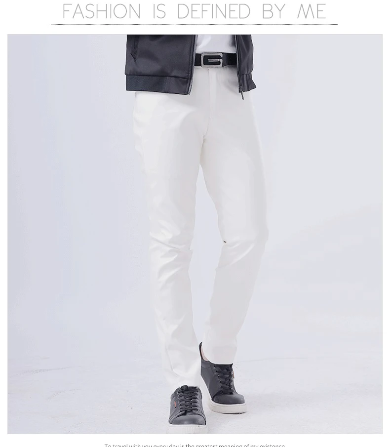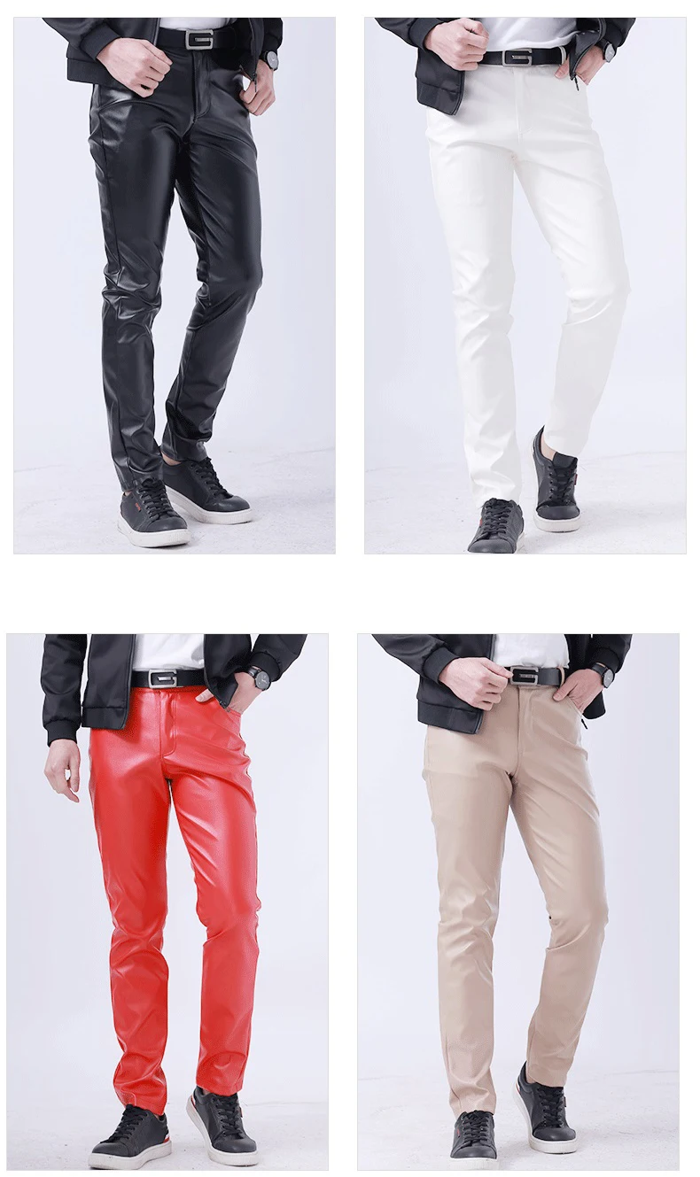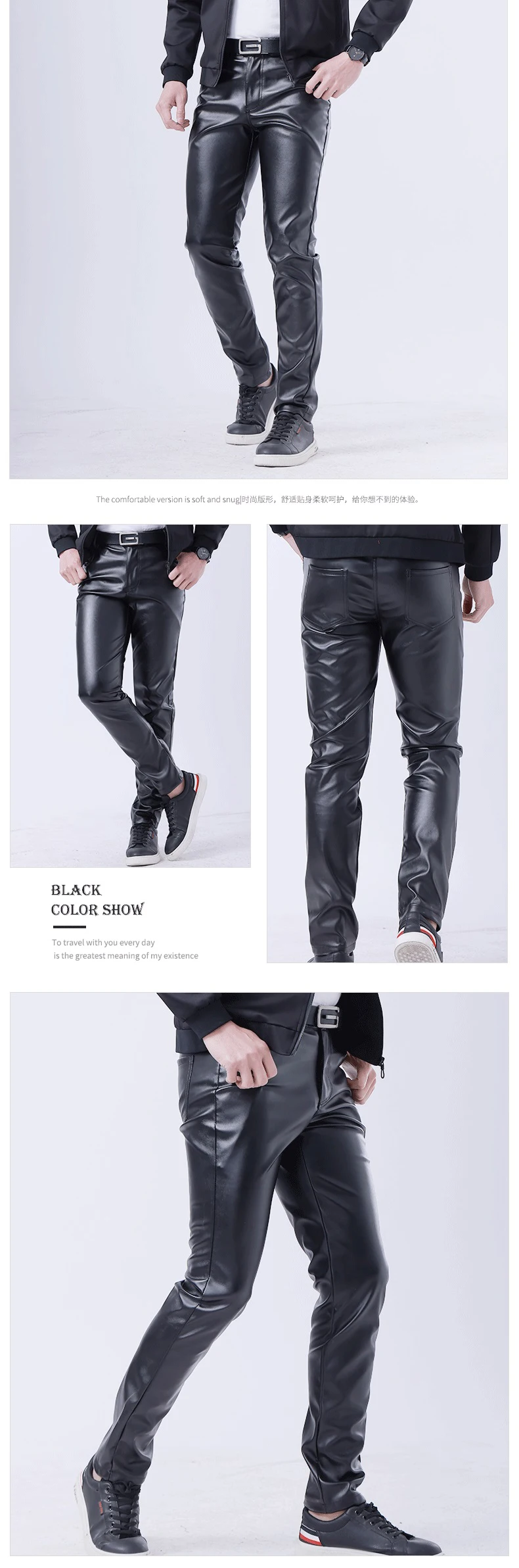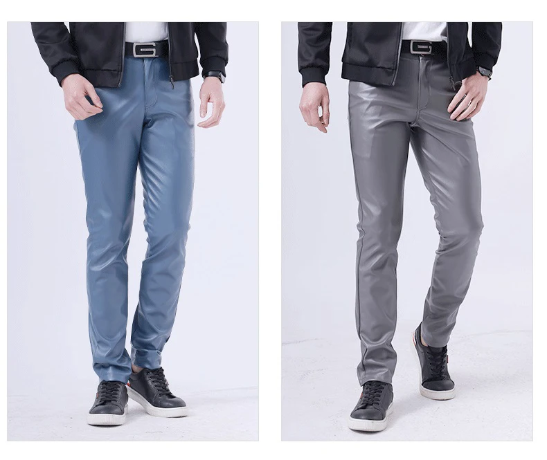 Брюки Idopy мужские из искусственной кожи, Стрейчевые облегающие деловые повседневные летние тонкие штаны из искусственной кожи для мужчин