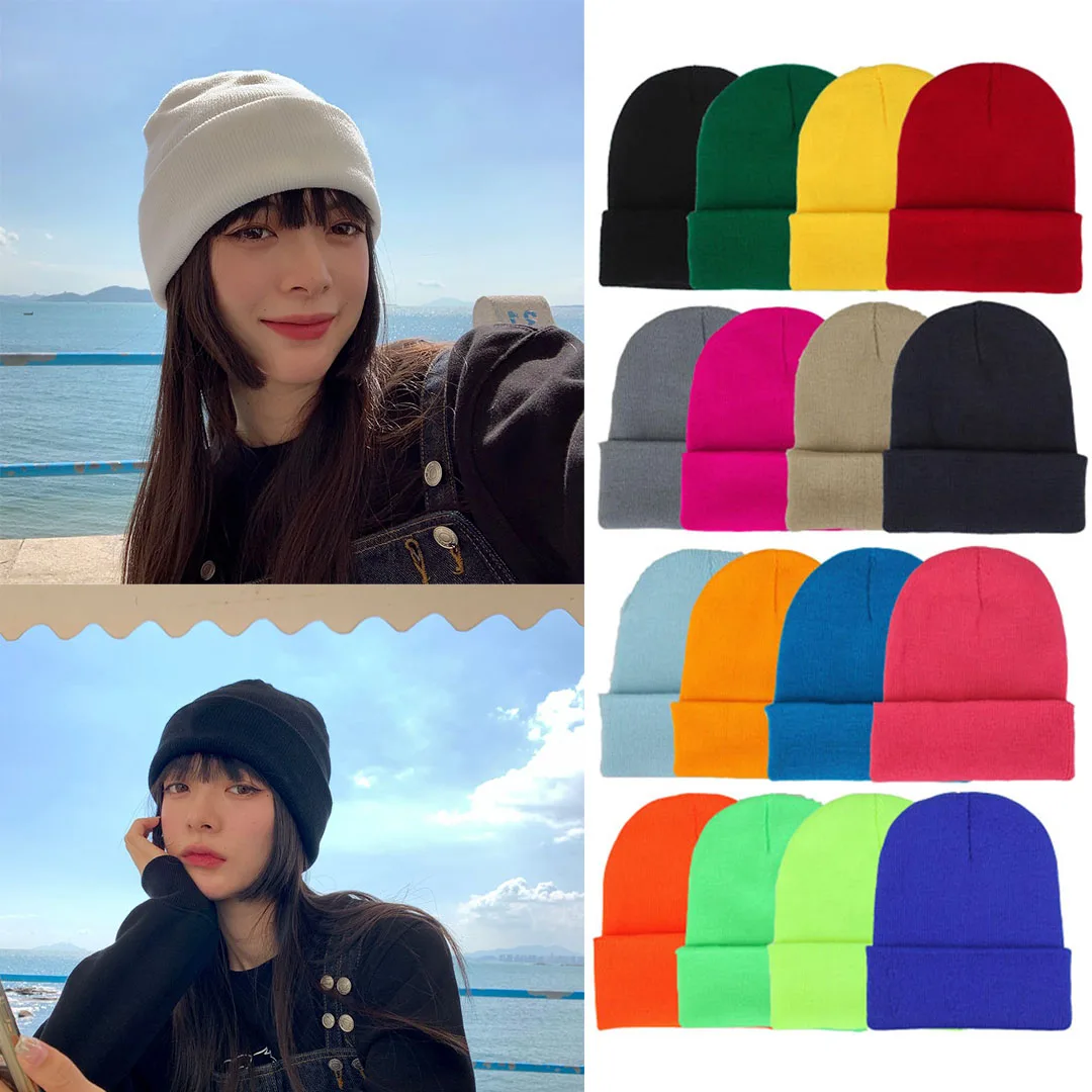 Зимние шапки для женщин, Новые облегающие шапки, вязаная однотонная...