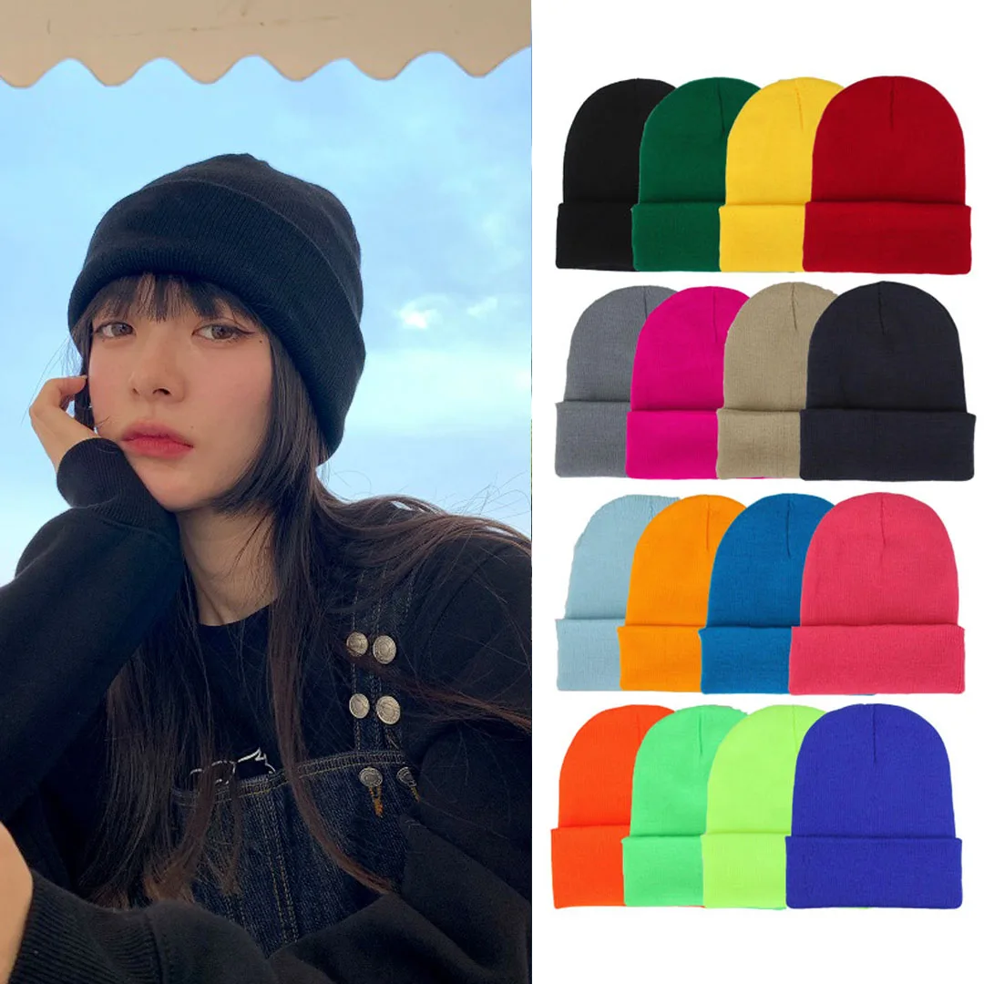 Зимние шапки INS для женщин, теплые облегающие шапки, вязаная флуоресцентная шапка для девушек, шляпа, Женская Повседневная шапка, осенняя Женская облегающая шапка