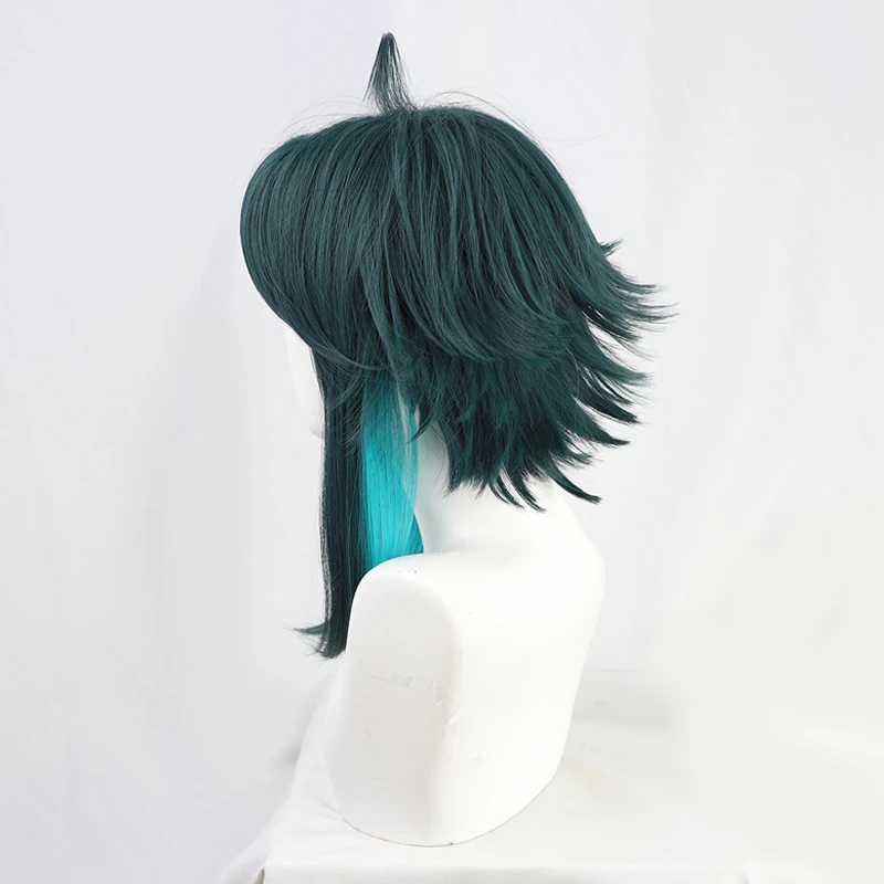 Парик для косплея Game Genshin Impact Xiao смешанный темно-зеленый синий Короткие термостойкие волосы Хэллоуин ролевые игры аниме парики + парик шапочка