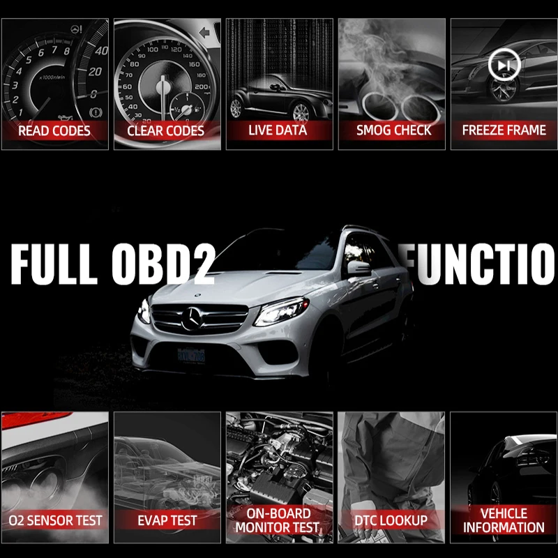 *-Быстро считывает широкий ток, отложенные и постоянные коды в системе OBD*-Четкие обнаруженные коды неисправностей и эффективно выключите контрольный светильник двигателя*-Просмотр графических данных в реальном времени компьютерного модуля (ов) транспортного средства для легкого анализа*-Просмотр рабочих параметров транспортного средства в момент обнаружения DTC*-Прочтите состояние готовности I/M, чтобы транспортное средство было проверено на соответствие государственным выбросам*-Выполнить испытание датчика O2 для проверки топливной эффективности и выбросов транспортного средства*-Чтение результатов бортовых диагностических тестов мониторинга для конкретных компонентов/систем*-Полностью извлеките информацию о транспортном средстве от VIN, CINs и CVNs*-Выполнить испытание компонентов, позволяя начать испытание на утечку для Системы EVAP транспортного средства