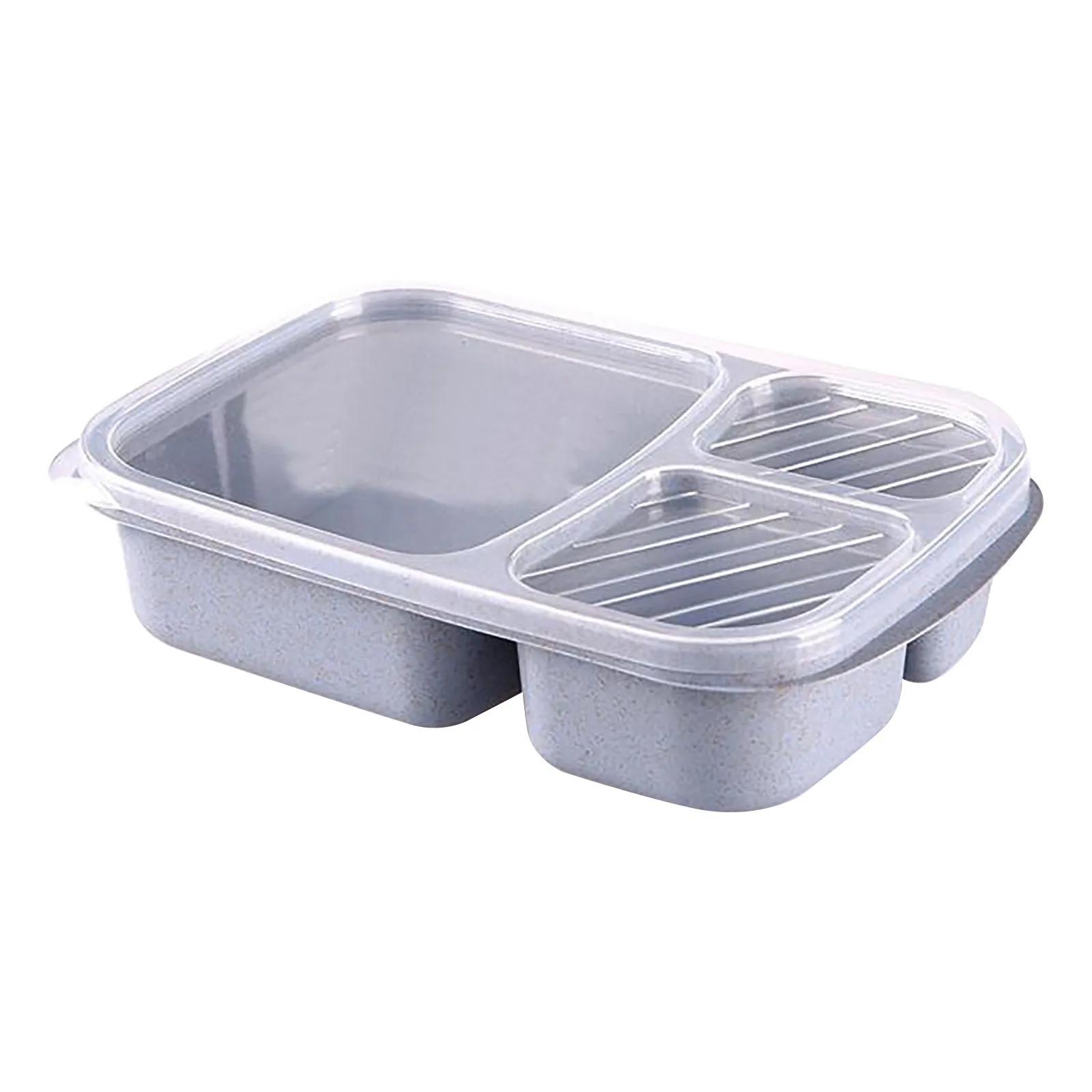 Контейнер для завтрака Bentobox с 3 отделениями, многоразовый пластиковый контейнер для хранения пищевых продуктов, коробки для хранения пшеничной соломы, отдельные Ланч-боксы # 2F