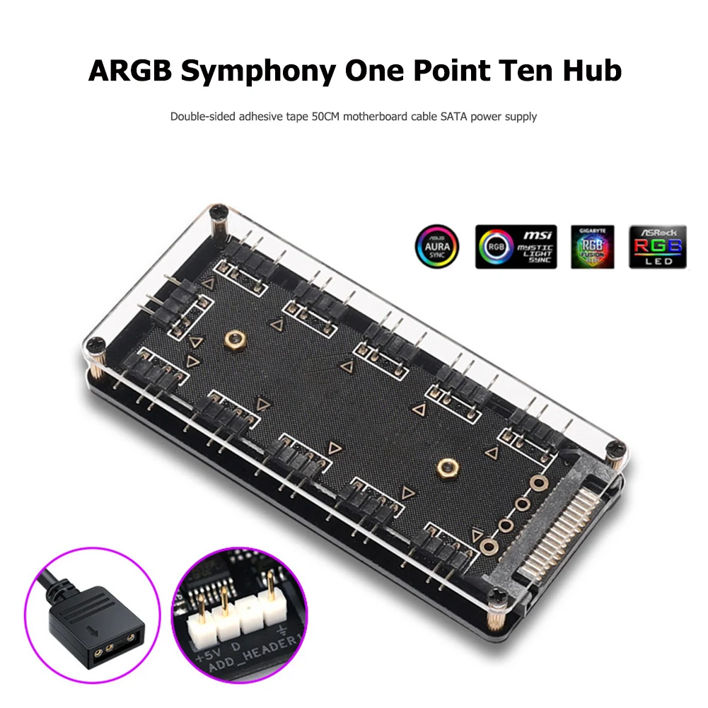 10 Порты RGB вентилятор хаб ПК настольный компьютер 5V 3PIN ARGB Уд...