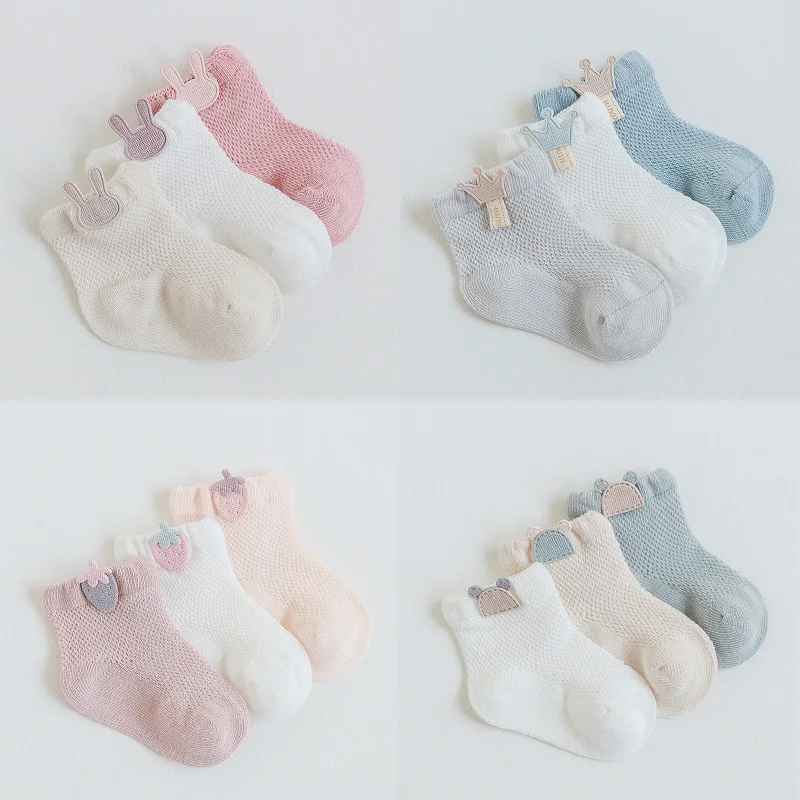 3 парыЛот, носки для новорожденных, милые Мультяшные детские носки, сетчатые детские носки без косточек с вышивкой, детские носки для мальчиков и девочек