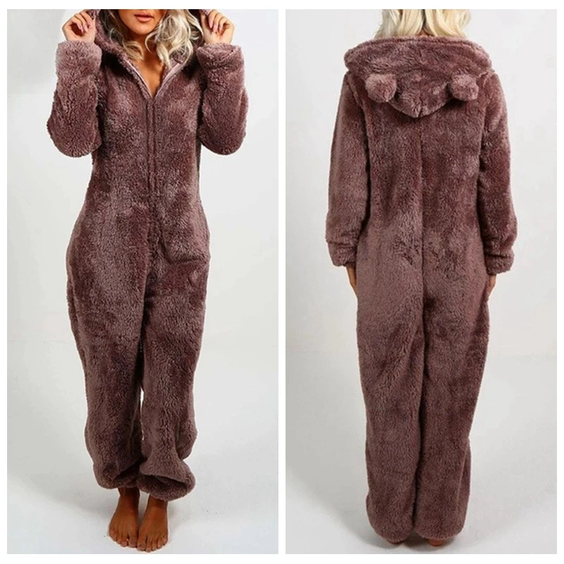 Зимняя теплая Пижама, женские Пушистые Комбинезоны из кораллового флиса, одежда для сна, комбинезон с капюшоном, домашние комплекты для взрослых