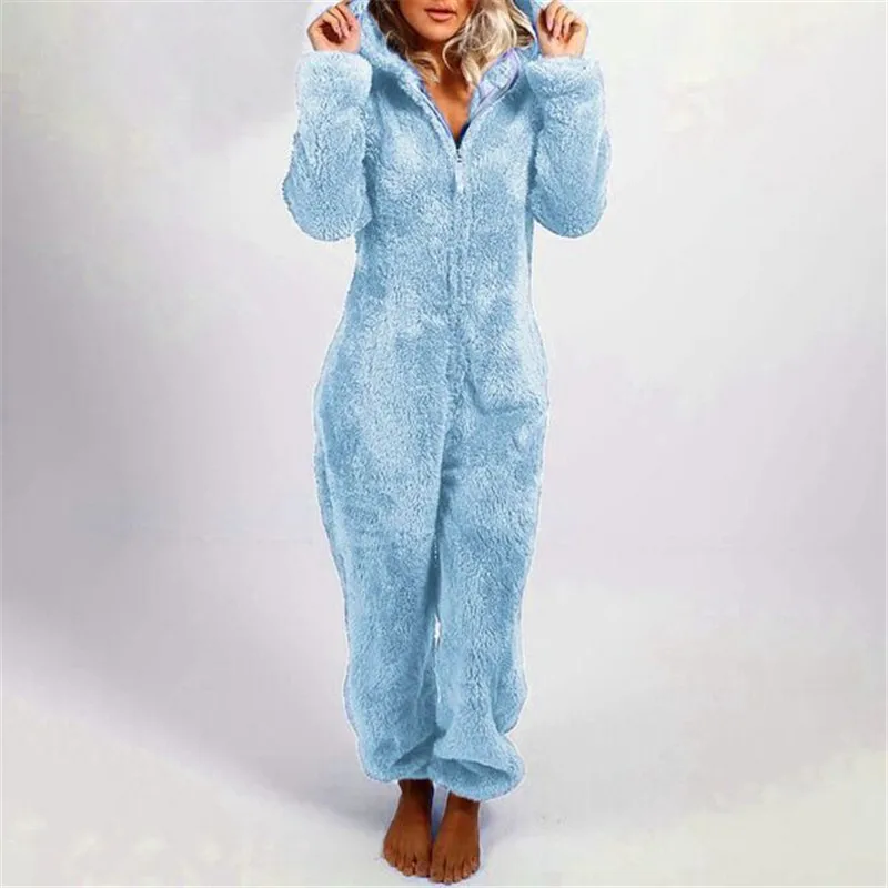 Комбинезон женский зимний плюшевый с капюшоном и длинным рукавом, Л...