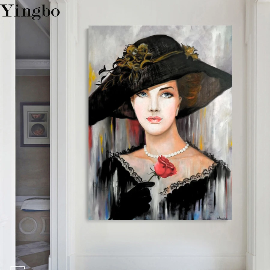 5D алмазная живопись сделай сам, алмазная вышивка сделай сам, красивая шляпа, Женская мозаика, набор для рисования, роза, женщина, полный квадратный холст, Декор