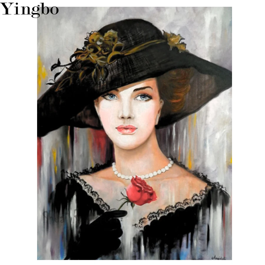 5D Diy Алмазная картина Diy Алмазная вышивка красивая шляпа Дамская мозаика картина пасты набор Роза женщина полный квадратный дрель Декор